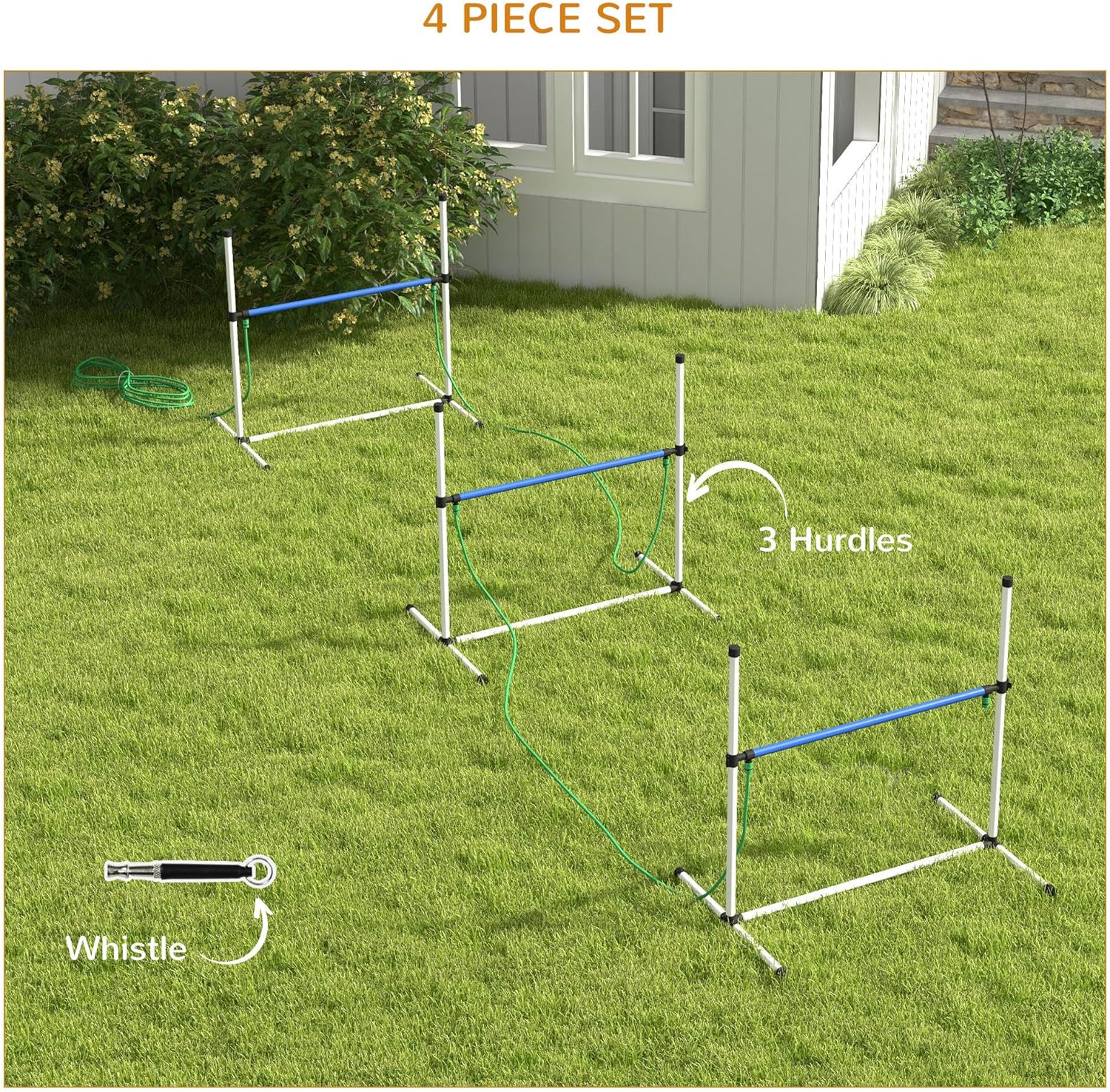 <p class="a-spacing-base"> Bring your dog the fun and excitement of agility training with the PawHut pet agility set. This 3-piece set, featuring three adjustable hurdles, a whistle, and a 600D carry bag, is your dog's ticket to versatile agility exercises. With a water spray function for cooling fun on hot days and multiple training configurations, this dog agility set creates an outdoor adventure for you and your furry friend. </p>