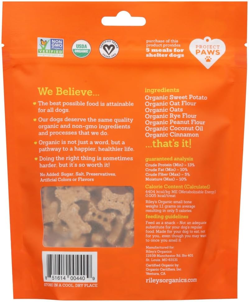 Riley’s Organics – Sweet Potato – 5 oz Small Biscuits – Human Grade Organic Dog Treats – Resealable Bag