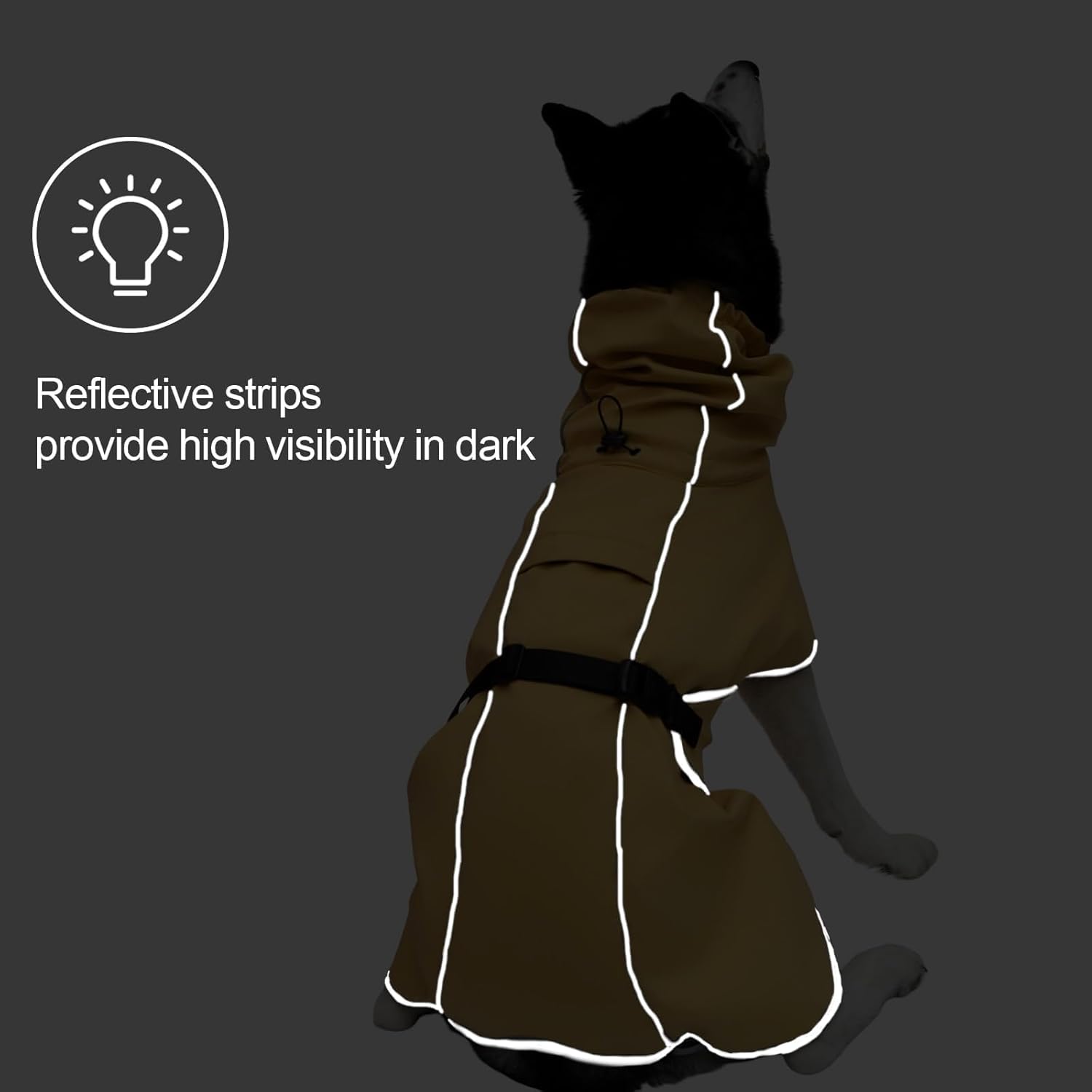 <img alt="waterproof and warm" src="https://m.media-amazon.com/images/S/aplus-media-library-service-media/0e77c7bc-832b-44cb-8879-9c461554a4a7.__CR0,0,1464,600_PT0_SX1464_V1___.jpg"> <p class="description aplus-p1"> 4-layer fabric design, waterproof and warm. </p> <img alt="adjustable head and neck with storage pocket" src="https://m.media-amazon.com/images/S/aplus-media-library-service-media/86030d22-ffbd-4cd8-b9c4-3f4846ada1dd.__CR0,0,1464,600_PT0_SX1464_V1___.jpg"> <p class="description aplus-p1"> Adjustable buckles for custom fit. Neck pocket prevents buckle chewing. </p> <img alt="Abdominal snap buckle adjustable" src="https://m.media-amazon.com/images/S/aplus-media-library-service-media/3699d336-a892-4771-bbce-3c02ef88529c.__CR0,0,1464,600_PT0_SX1464_V1___.jpg"> <p class="description aplus-p1"> Strong belly buckle design protects the abdomen and secures the raincoat. </p> <img alt="large leash hole" src="https://m.media-amazon.com/images/S/aplus-media-library-service-media/4c415694-cd4b-4188-9506-b294688ee695.__CR0,0,1464,600_PT0_SX1464_V1___.jpg"> <p class="description aplus-p1"> Large leash hole with two buckles fits harness and prevents water entry. </p> <img alt="windproof and sturdy" src="https://m.media-amazon.com/images/S/aplus-media-library-service-media/9805b356-b4f6-413b-8546-22a93d08fd92.__CR0,0,1464,600_PT0_SX1464_V1___.jpg"> <p class="description aplus-p1"> Two-piece chest windproof flaps allow free movement with adjustable leg straps for secure the poncho </p>