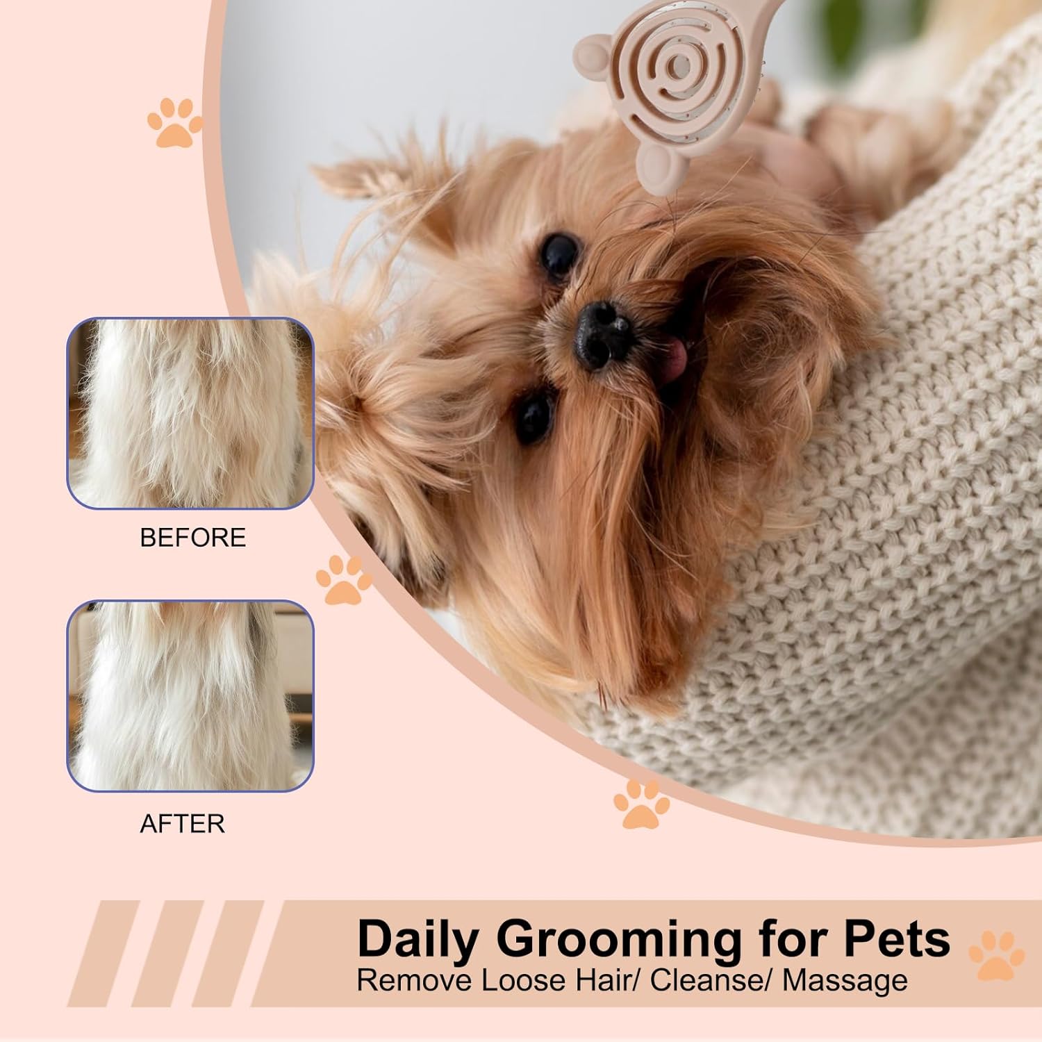 <br> Package Dimensions : 5.71 x 2.99 x 1.77 inches; 1.76 ounces <br> Date First Available : May 2, 2025 <br> Manufacturer : MAEELOU <br> ASIN : B0F7984791 <br> Best Sellers Rank: #51,877 in Pet Supplies (See Top 100 in Pet Supplies) #260 in Dog Brushes <br> Customer Reviews: 4.4 4.4 out of 5 stars 27 ratings var dpAcrHasRegisteredArcLinkClickAction; P.when('A', 'ready').execute(function(A) { if (dpAcrHasRegisteredArcLinkClickAction !== true) { dpAcrHasRegisteredArcLinkClickAction = true; A.declarative( 'acrLink-click-metrics', 'click', { "allowLinkDefault": true }, function (event) { if (window.ue) { ue.count("acrLinkClickCount", (ue.count("acrLinkClickCount") || 0) + 1); } } ); } }); P.when('A', 'cf').execute(function(A) { A.declarative('acrStarsLink-click-metrics', 'click', { "allowLinkDefault" : true }, function(event){ if(window.ue) { ue.count("acrStarsLinkWithPopoverClickCount", (ue.count("acrStarsLinkWithPopoverClickCount") || 0) + 1); } }); }); <br>Specially crafted soft bristles with flexible density gently glide through puppy fur and delicate small dog coats to eliminate tangles and remove loose hair without scratching sensitive skin or causing irritation, making it ideal for daily grooming sessions on Yorkies Shih Tzus Maltipoos Maltese and other toy breeds with fine hair or easily irritated skin<br>Unique cat-ear-shaped plastic handle combines ergonomic comfort with non-slip grip technology featuring textured ridges that fit perfectly in palms for precise control during bath time brushing or sensitive puppy grooming<br>Ultra-gentle bristle system features shorter massage nodes to stimulate blood circulation and distribute natural oils for healthier skin alongside longer flexible teeth that effortlessly penetrate thick puppy undercoats to prevent matting and reduce shedding without pulling delicate hairs or damaging fragile puppy skin during brushing<br>Specially designed rounded bristle tips and low-resistance flex create a stress-free grooming experience for anxious puppies and small dogs with the cat-ear handle providing extra stability for pet parents to maintain steady strokes while brushing difficult areas like behind ears under legs and around curly tails on breeds prone to tangles<br>Multi-functional grooming tool works as both a daily maintenance brush for removing dirt debris and loose hair and a soothing massage comb to bond with growing puppies, featuring easy-clean bristle spacing that resists hair buildup and a compact portable shape ideal for travel kits or quick touch-ups between professional grooming appointments