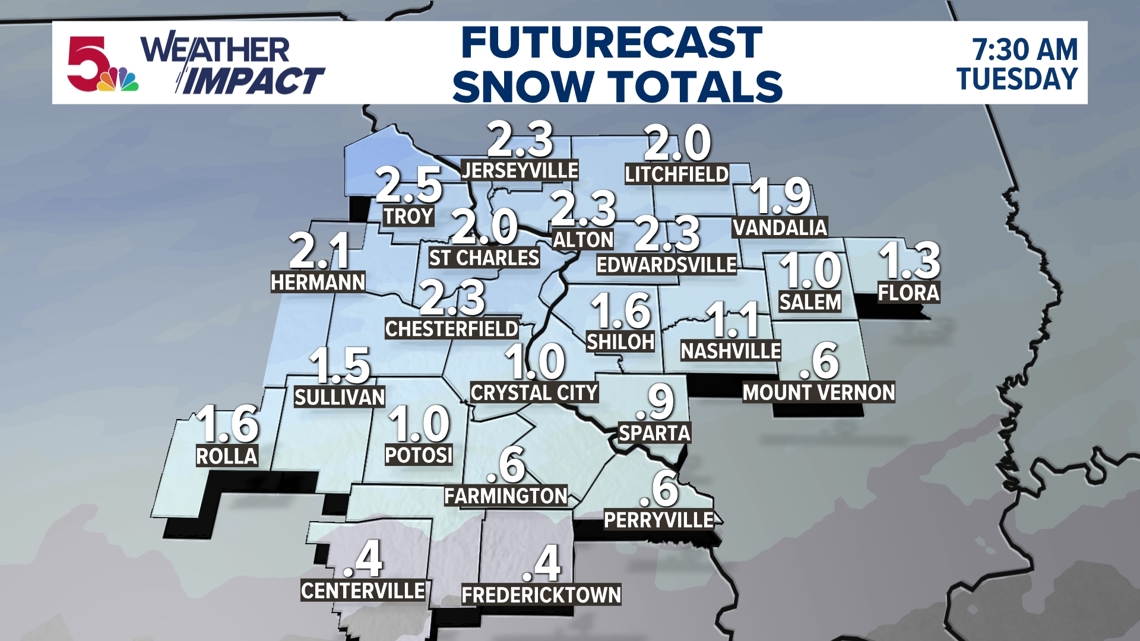 Because of the timing of this storm, during a period where most everyone is back to work or school, a Weather Impact Alert has been issued for this afternoon. Expect slick roads and travel delays, but they will not be as major as they were on Saturday morning.