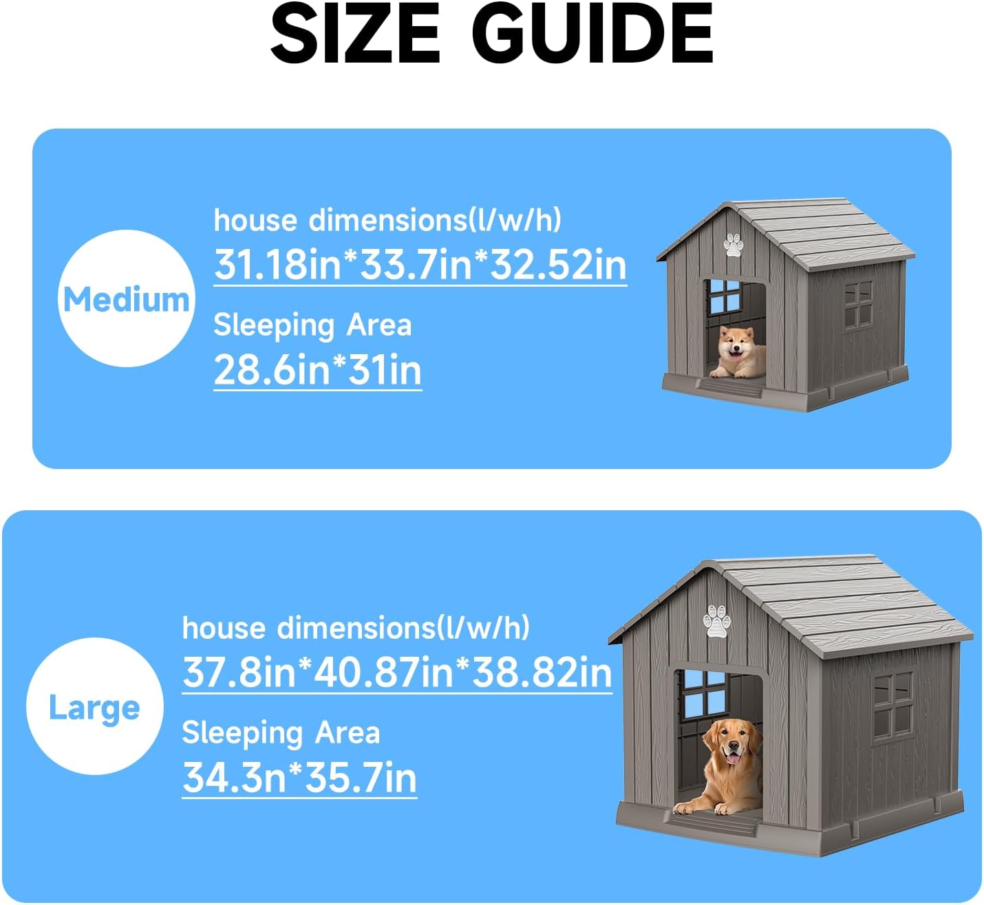 <br> Product Dimensions : 40.87 x 37.8 x 38.82 inches <br> Item model number : EA 024 <br> Date First Available : June 2, 2025 <br> Manufacturer : EasyUp <br> ASIN : B0FBMF8H1X <br> Best Sellers Rank: #59,549 in Pet Supplies (See Top 100 in Pet Supplies) #146 in Dog Houses <br> Customer Reviews: 4.5 4.5 out of 5 stars 45 ratings var dpAcrHasRegisteredArcLinkClickAction; P.when('A', 'ready').execute(function(A) { if (dpAcrHasRegisteredArcLinkClickAction !== true) { dpAcrHasRegisteredArcLinkClickAction = true; A.declarative( 'acrLink-click-metrics', 'click', { "allowLinkDefault": true }, function (event) { if (window.ue) { ue.count("acrLinkClickCount", (ue.count("acrLinkClickCount") || 0) + 1); } } ); } }); P.when('A', 'cf').execute(function(A) { A.declarative('acrStarsLink-click-metrics', 'click', { "allowLinkDefault" : true }, function(event){ if(window.ue) { ue.count("acrStarsLinkWithPopoverClickCount", (ue.count("acrStarsLinkWithPopoverClickCount") || 0) + 1); } }); }); <br>Durable Structure and Safe Materials: Our doghouse is made of very safe plastic material, which is non-toxic, odorless, and pet-friendly. It features excellent UV protection and waterproof properties, providing a safe, comfortable, and dry shelter for your dogs, whether during the hot summer or rainy season. Its durable construction ensures long-term use<br>Perfect Design for Indoor and Outdoor Use: This dog house outdoor features a sloped roof design that effectively prevents water accumulation, keeping the interior dry. It is equipped with an elevated floor to prevent water pooling and includes four extra ground stakes to anchor the kennel securely. Whether on grassy frames or solid surfaces, this weatherproof shelter is suitable for all conditions and serves as the ideal tent for your puppy or adult dogs<br>Temperature Control and Ventilation: Designed with air vents and windows, this indoor dog house creates an effective air circulation system. Its innovative temperature-balancing function keeps your dog warm in winter and cool in summer. The cave-like design provides a cozy nest, making it a comfortable resting place for your large, medium, or small dogs<br>Easy Installation: All accessories are included for easy setup, allowing one person to assemble or disassemble the dog house indoor in about 20 minutes. The removable roof simplifies cleaning and makes it convenient to relocate, whether you're traveling or moving. This adjustable shelter adapts to any environment, offering a reliable space for your pet<br>Easy to Clean: The removable roof makes cleaning hassle-free. Simply detach it to access the interior of the dog house and ensure the living space remains hygienic. The washable surface materials are designed for quick maintenance, keeping your puppy's bed fresh and clean