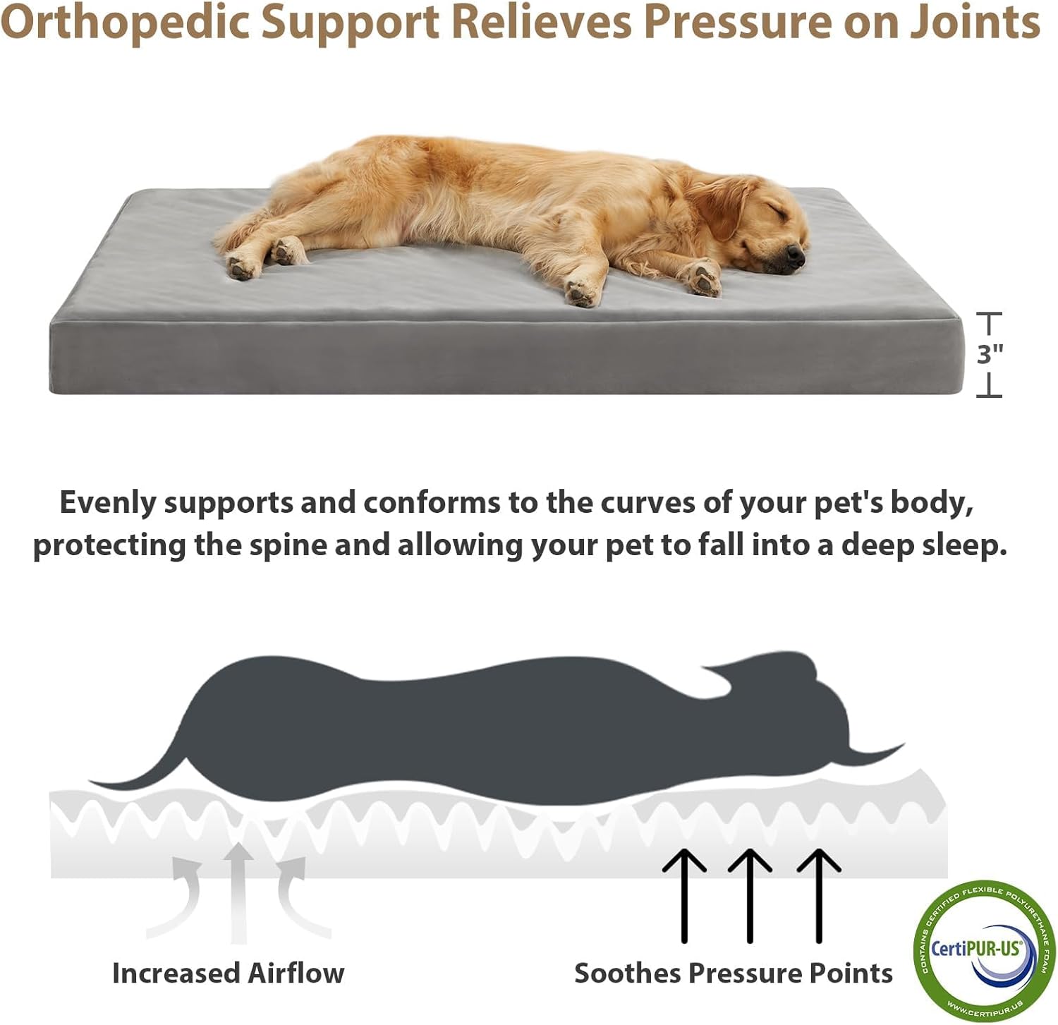 <br> Product Dimensions : 35 x 22 x 3 inches; 3.24 Pounds <br> Item model number : RR075GR3522 <br> Date First Available : July 31, 2025 <br> Manufacturer : RRPETHOME <br> ASIN : B0FDW9Q7TL <br> Best Sellers Rank: #21,210 in Pet Supplies (See Top 100 in Pet Supplies) #149 in Dog Bed Mats <br> Customer Reviews: 2.9 2.9 out of 5 stars (99) var dpAcrHasRegisteredArcLinkClickAction; P.when('A', 'ready').execute(function(A) { if (dpAcrHasRegisteredArcLinkClickAction !== true) { dpAcrHasRegisteredArcLinkClickAction = true; A.declarative( 'acrLink-click-metrics', 'click', { "allowLinkDefault": true }, function (event) { if (window.ue) { ue.count("acrLinkClickCount", (ue.count("acrLinkClickCount") || 0) + 1); } } ); } }); P.when('A', 'cf').execute(function(A) { A.declarative('acrStarsLink-click-metrics', 'click', { "allowLinkDefault" : true }, function(event){ if(window.ue) { ue.count("acrStarsLinkWithPopoverClickCount", (ue.count("acrStarsLinkWithPopoverClickCount") || 0) + 1); } }); }); <br>Indestructible Dog Bed: Durable heavy-duty dog bed designed for dogs with aggressive chewers, made of high-density foam with a cover made of 3 layers of military-grade fabric laminated together,and chew resistant dog bed is designed with double stitching and full-body reinforcement for protection against tearing and daily wear and tear<br>Washable Dog Bed: The cover of the chew proof dog bed is completely removable for easy cleaning. Whether it's muddy paw prints from your dog's outdoor play or an accident, simply throw the cover of the dog crate bed washable into the washing machine for more cosy moments for you and your dog<br>Orthopedic Dog Beds for Large Dogs: The memory foam dog bed is made of highly resilient thick foam that effectively distributes pressure to provide optimal support for your dog while protecting his hips, elbows, and spine from excessive strain. Whether your dog chooses to curl up or stretch out, the durable dog bed allow your dog to rest comfortably and wake up with energy<br>Waterproof Dog Bed with Hidden Zipper: The outdoor pet bed waterproof lining effectively blocks liquid, keep the high-density foam from accidents and extends the life of the water proof dog bed. In addition, the hidden zip design not only enhances the appearance of the tough dog bed, but also prevents curious dogs from chewing on it well, providing your pet with a safer thick dog bed<br>Large Dog Bed: 36 x 27 x 3 inch large orthopedic dog bed is perfect for medium and large breeds weighing less than 60 pounds. The heavy duty dog bed is designed to provide plenty of room for stretching and resting comfortably