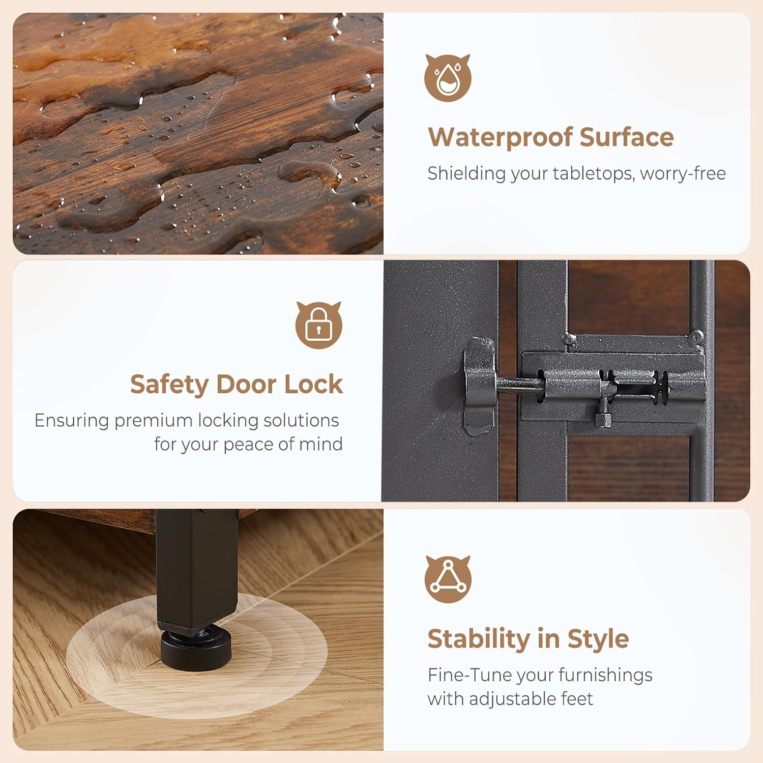 【Two Room & Magnetic Door Buckle】Our large double dog crate end table is designed with a removable divider that can keep two medium dogs and can also put dog food on the side, The divider can also be removed to accommodate a large size dog
