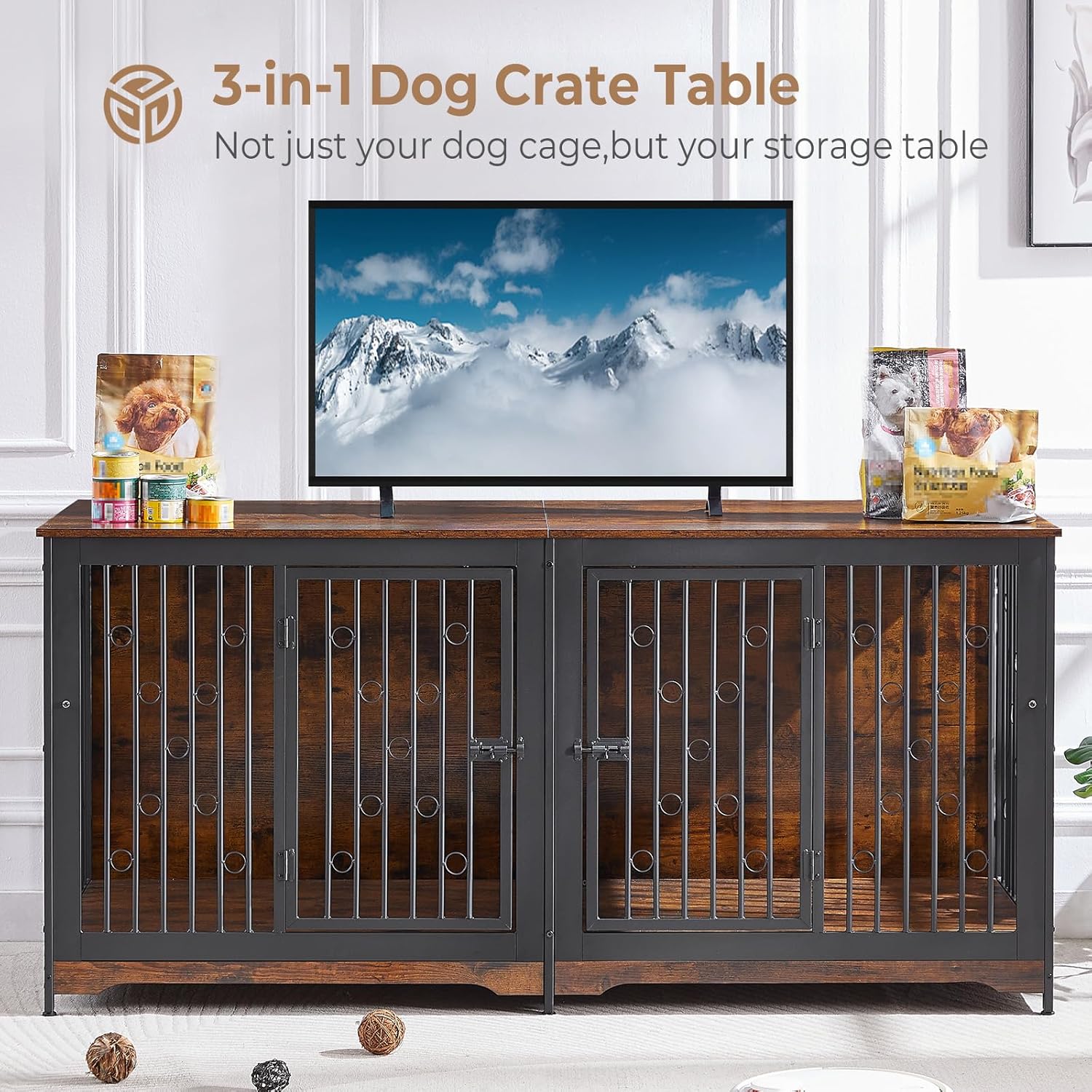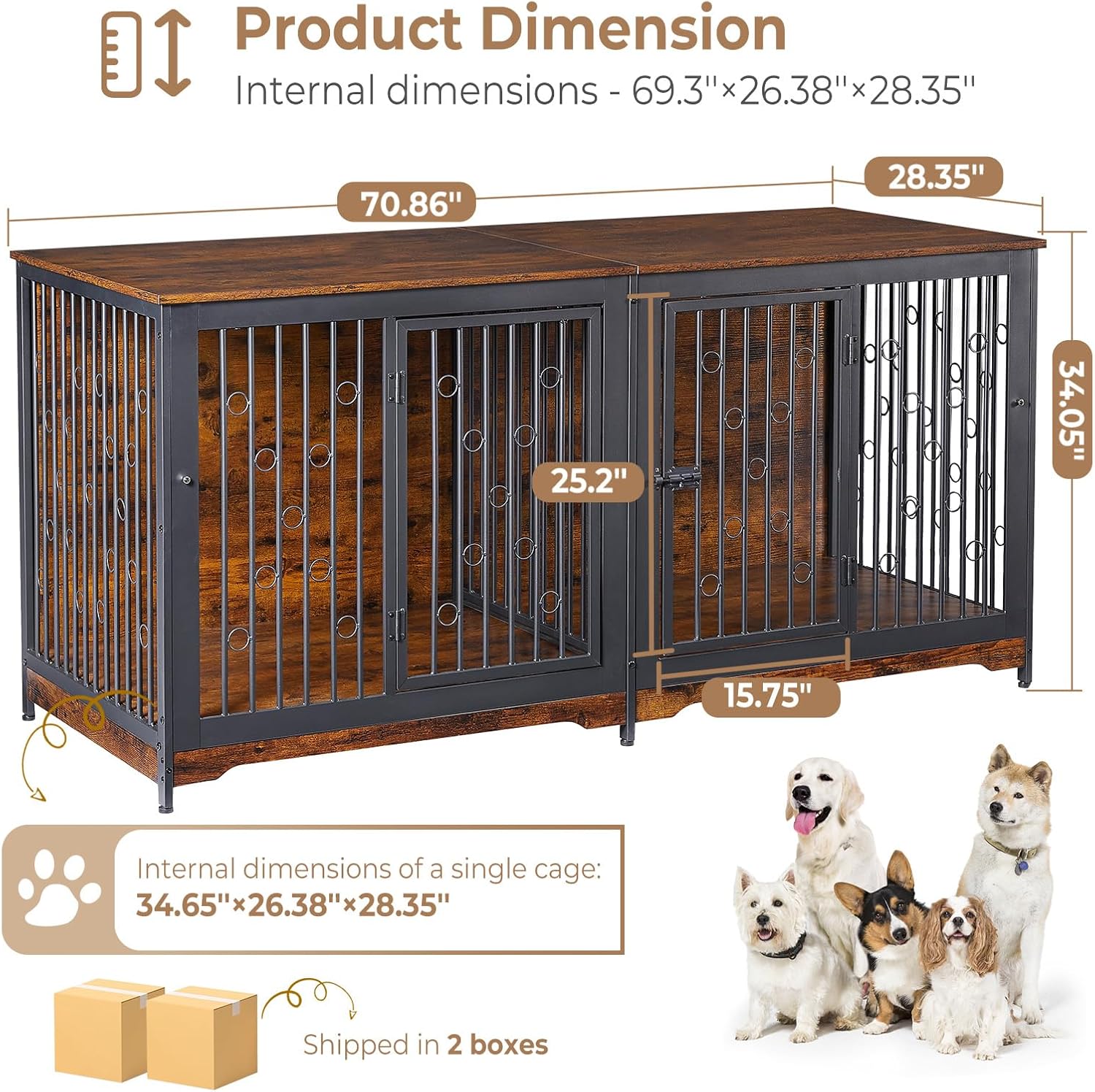 【Sturdy and Chew-Resistant】This dog crate furniture for 2 dogs is made of premium particle board and iron pipe, which is stronger and more chewy, it will accompany your dog throughout the growing stages