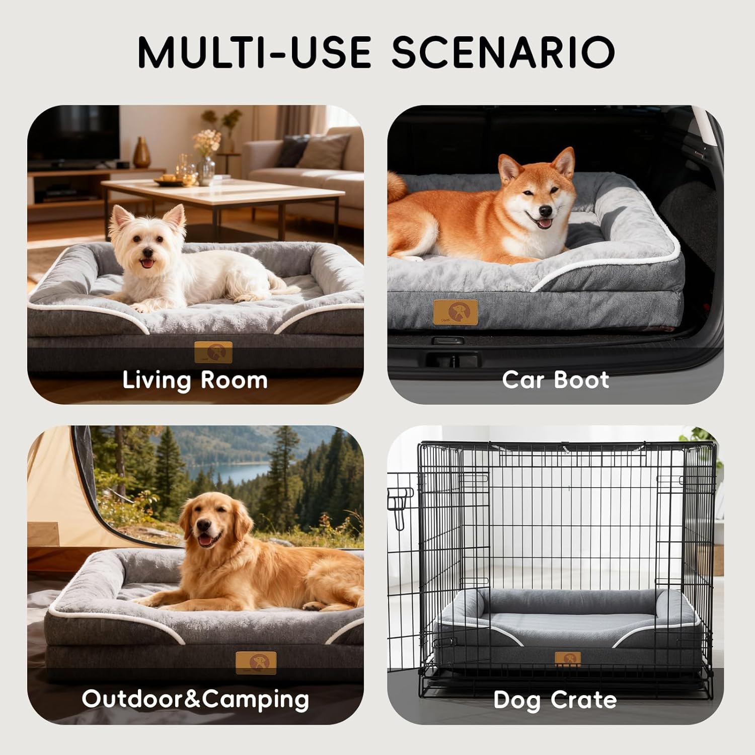 <br> Product Dimensions : 42 x 30 x 7 inches; 7.14 Pounds <br> Date First Available : July 30, 2025 <br> Manufacturer : Homemate <br> ASIN : B0FLD6KG8Z <br> Best Sellers Rank: #7,282 in Pet Supplies (See Top 100 in Pet Supplies) #121 in Dog Beds <br> Customer Reviews: 4.6 4.6 out of 5 stars (82) var dpAcrHasRegisteredArcLinkClickAction; P.when('A', 'ready').execute(function(A) { if (dpAcrHasRegisteredArcLinkClickAction !== true) { dpAcrHasRegisteredArcLinkClickAction = true; A.declarative( 'acrLink-click-metrics', 'click', { "allowLinkDefault": true }, function (event) { if (window.ue) { ue.count("acrLinkClickCount", (ue.count("acrLinkClickCount") || 0) + 1); } } ); } }); P.when('A', 'cf').execute(function(A) { A.declarative('acrStarsLink-click-metrics', 'click', { "allowLinkDefault" : true }, function(event){ if(window.ue) { ue.count("acrStarsLinkWithPopoverClickCount", (ue.count("acrStarsLinkWithPopoverClickCount") || 0) + 1); } }); }); <br>Orthopedic Support: HOMEMATE dog bed combines high - density egg crate foam with memory foam to deliver exceptional orthopedic support. The egg crate foam cushions your dog's body, while the memory foam conforms to its shape, effectively relieving joint pain and pressure points, offering them the extra cushioning and support needed for a comfortable rest.<br>Free Gifts Included: Purchase our Homemate dog mat and receive a complimentary durable dog chewing toy. The toy is designed to withstand your dog's playful chewing. These thoughtful gifts enhance your shopping value making it a perfect choice for pet owners seeking quality and convenience.<br>Sofa Dog Bed: The four side support design enhances ultimate comfort and safety, providing your pet with multiple comfortable snuggling positions. The fully padded support design can better support pets' heads and necks, allowing them to sleep more comfortably. The lowered entrance design protects pets' knees and improves the convenience of entry and exit.<br>Washable and Leak Proof: The external material is easy to clean and can be easily wiped to remove dirt and dust. Even if your dog leaks urine or drools, you don't have to worry. Just remove the cover and clean it separately. The waterproof layer below protects the internal foam from moisture and stains to ensure that the sponge remains dry and sanitary.Please note that the foam insert is not washable. Allow the bed to expand for 24-72 hours after unpacking.<br>Pet Friendly Certification: This pet bed has been designed with full consideration of the safety of pets, and has obtained OEKO-TEX Standard 100 safety certification to ensure that all materials used comply with strict safety standards, and the internal foam has been certified by CertiPUR-US; In addition, the anti slip bottom adds extra stability to minimize slipping and ensure the safety of pets