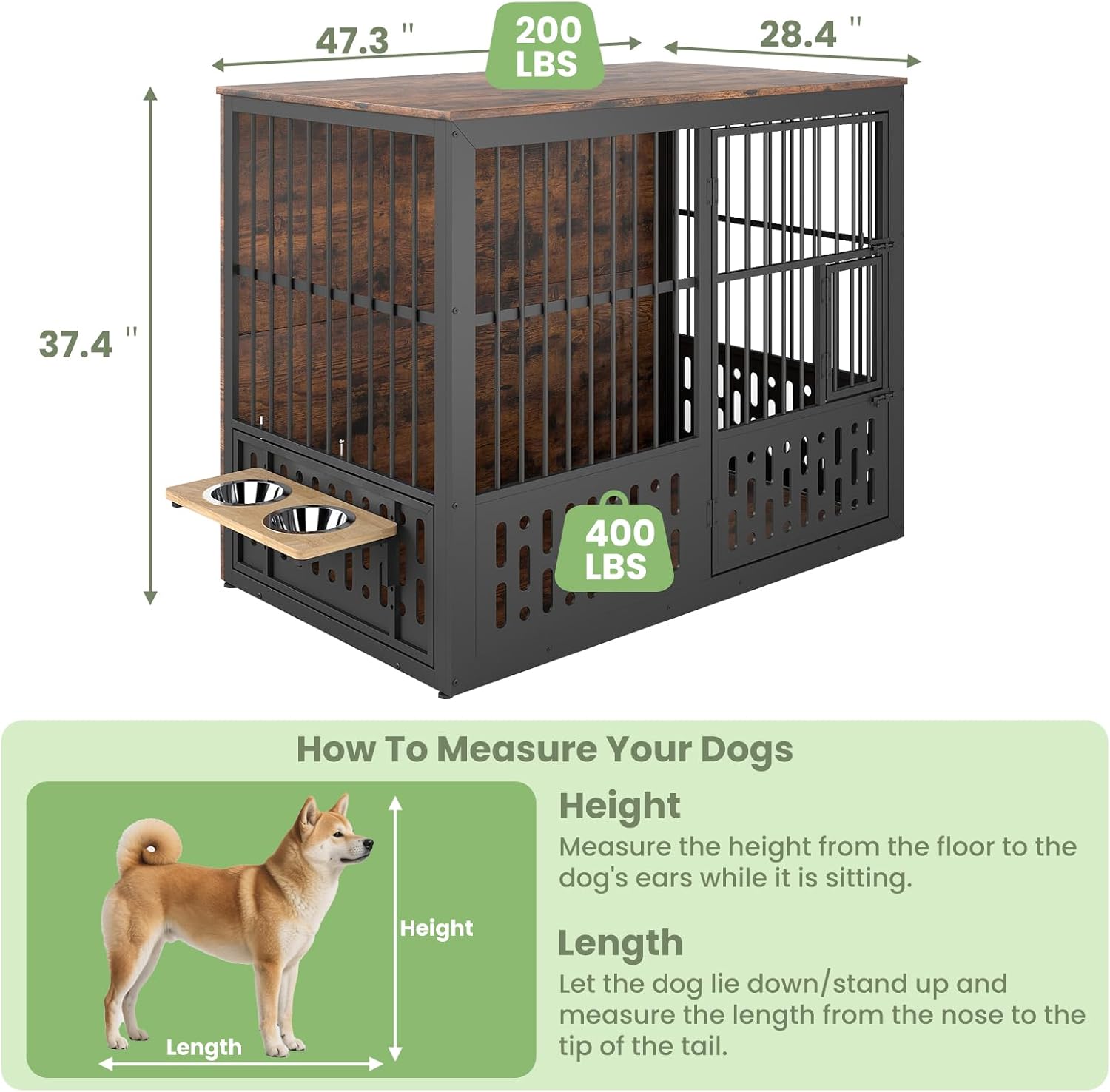 【Xlarge Dog Crate】With dimensions of 47.24″ L x 28.35″ W x 37.4″ H, the furniture dog crate provides ample space for medium to large dogs to train, stand, turn, play, and rest, ensuring comfort and freedom of movement. The indoor dog kennel also offers good air circulation and visibility
