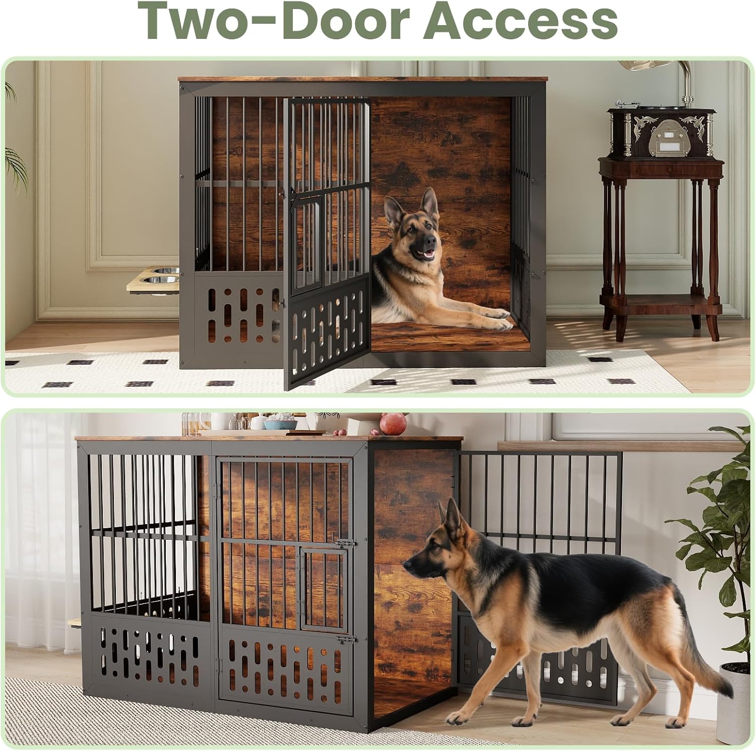 【360° Rotating Feeder】The xxl dog crate furniture gets a 360° rotating feeder for convenient feeding and interaction with your furry friend. Stable dog bowl stand with 2 stainless steel dog bowls can be adjusted to 5 heights, promoting dogs’ healthy digestion and great for their cervical spine