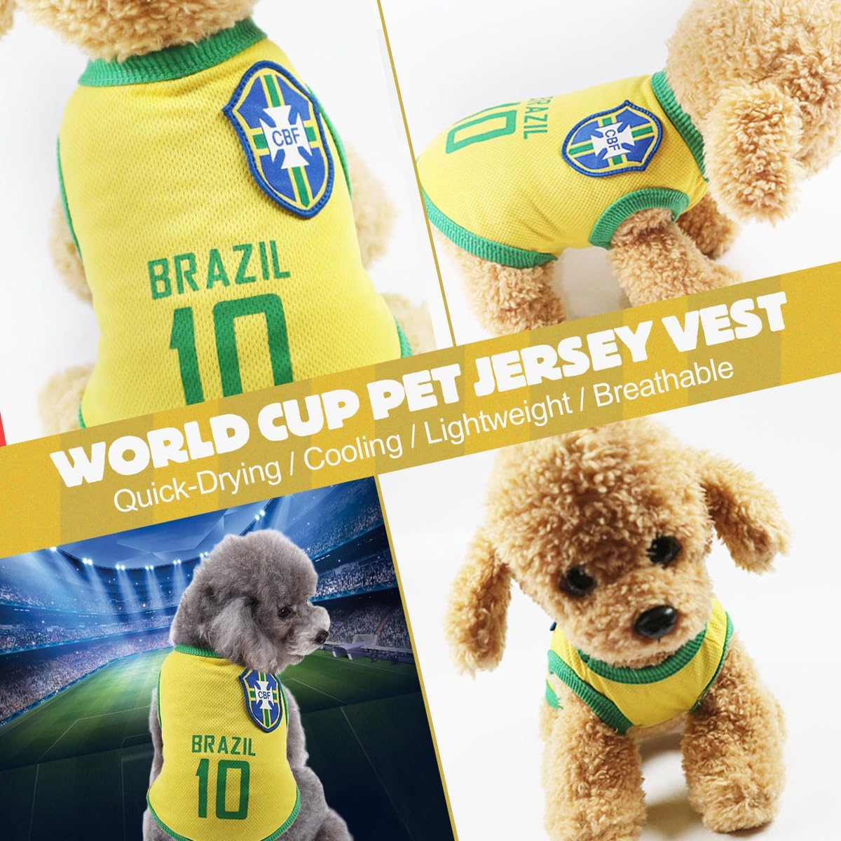 PLAYFUL PRINTS – With a classic World Cup national team print, this dog sports jersey vest lets you exercise and play football together, adding a touch of sporty charm and fun to your pet’s activities.
