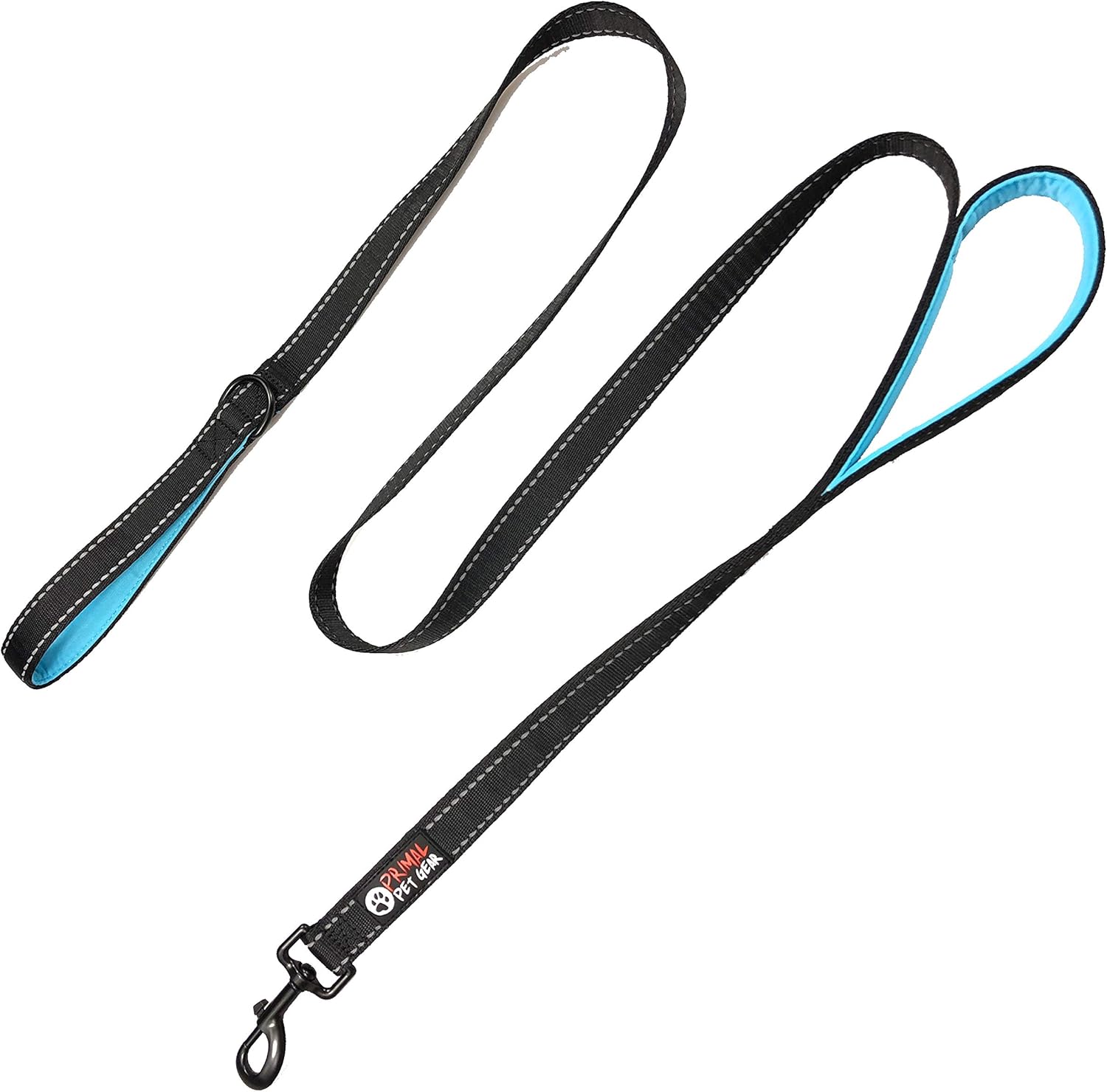 <br> Is Discontinued By Manufacturer : No <br> Product Dimensions : 72 x 12 x 30 inches; 5.61 ounces <br> Item model number : PPG-DHDL-6FT-BLACK-BLUE <br> Date First Available : June 5, 2018 <br> Manufacturer : Primal Pet Gear <br> ASIN : B07FP4CR34 <br> Best Sellers Rank: #11,873 in Pet Supplies (See Top 100 in Pet Supplies) #28 in Dog Training Leashes <br> Customer Reviews: 4.8 4.8 out of 5 stars (11,239) var dpAcrHasRegisteredArcLinkClickAction; P.when('A', 'ready').execute(function(A) { if (dpAcrHasRegisteredArcLinkClickAction !== true) { dpAcrHasRegisteredArcLinkClickAction = true; A.declarative( 'acrLink-click-metrics', 'click', { "allowLinkDefault": true }, function (event) { if (window.ue) { ue.count("acrLinkClickCount", (ue.count("acrLinkClickCount") || 0) + 1); } } ); } }); P.when('A', 'cf').execute(function(A) { A.declarative('acrStarsLink-click-metrics', 'click', { "allowLinkDefault" : true }, function(event){ if(window.ue) { ue.count("acrStarsLinkWithPopoverClickCount", (ue.count("acrStarsLinkWithPopoverClickCount") || 0) + 1); } }); }); <br>Enhanced Control: Dual handles provide versatile control, allowing for standard walking and quick, close control when needed.<br>Comfortable Handling: Neoprene padding on handles provides comfortable grip, minimizing hand strain during walks for both you and your dog.<br>Durable Reliability: Tough premium quality nylon, closely stitched, ensures long-lasting durability for demands of various outdoor activities and dog-walking needs.<br>Enhanced Safety: Double sided Reflective stitching add an extra layer of safety by improving visibility during low-light conditions for improved safety whilst walking at night.<br>Secure Fastening: The strong metal clip provides strong and fastening, providing peace of mind during walks by keeping your dog's safely tethered to the leash once correctly clipped on.