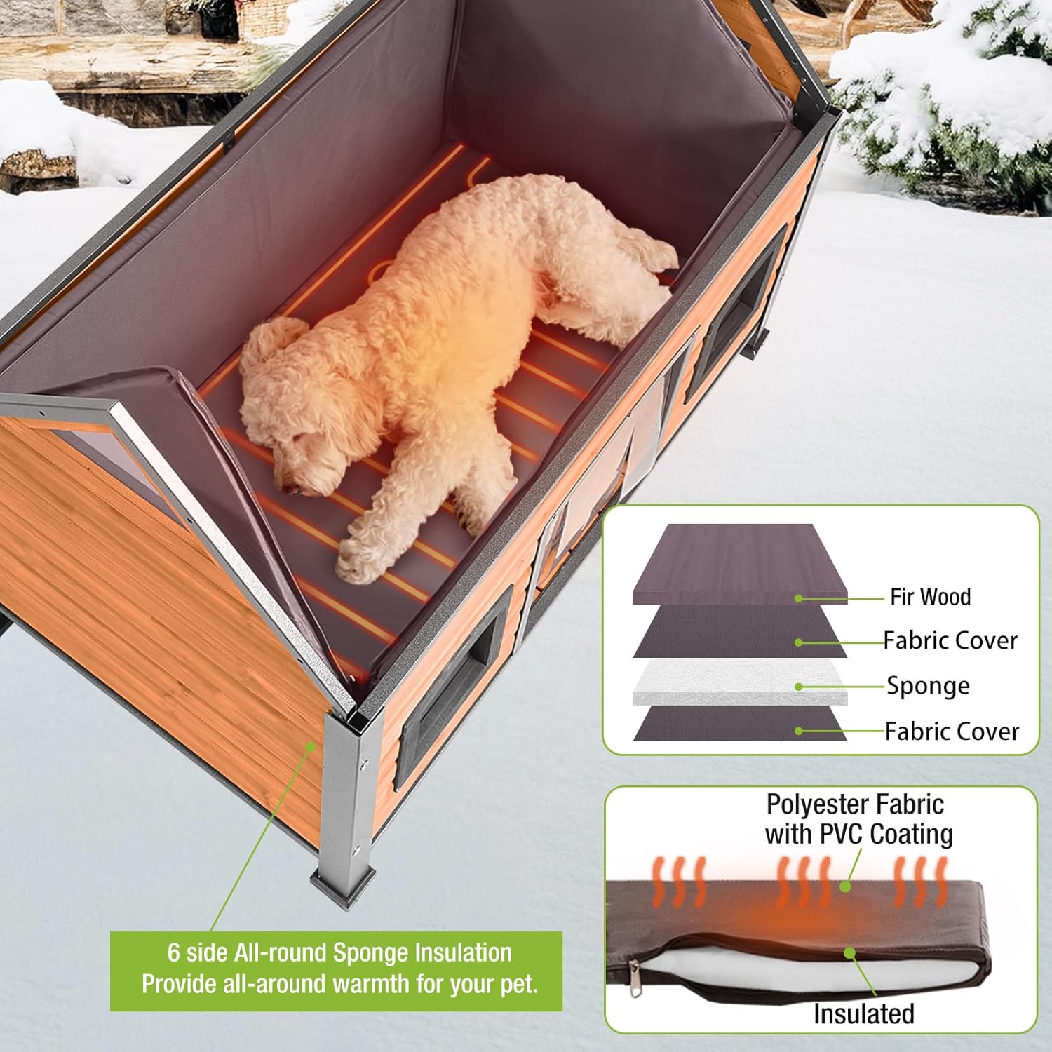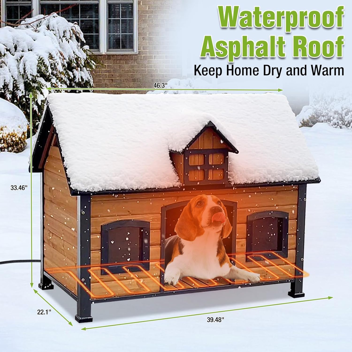 Keep Your Dog Cozy All Winter Long With Heated Dog House <img alt="dog house" src="https://images-na.ssl-images-amazon.com/images/G/01/x-locale/common/grey-pixel.gif" class="a-lazy-loaded" data-src="https://m.media-amazon.com/images/S/aplus-media-library-service-media/3ea46b22-8980-421e-bb06-83ccb286dbeb.__CR0,0,1464,600_PT0_SX1464_V1___.jpg"><img alt="dog house" src="https://m.media-amazon.com/images/S/aplus-media-library-service-media/3ea46b22-8980-421e-bb06-83ccb286dbeb.__CR0,0,1464,600_PT0_SX1464_V1___.jpg"> <p class="aplus-description aplus-container-3 aplus-p1"> Equipped with a heating system to controlled warmth well inside, meets high safety standards, keeps the dogs warm and cozy inside even when temperatures under 0°C. </p>