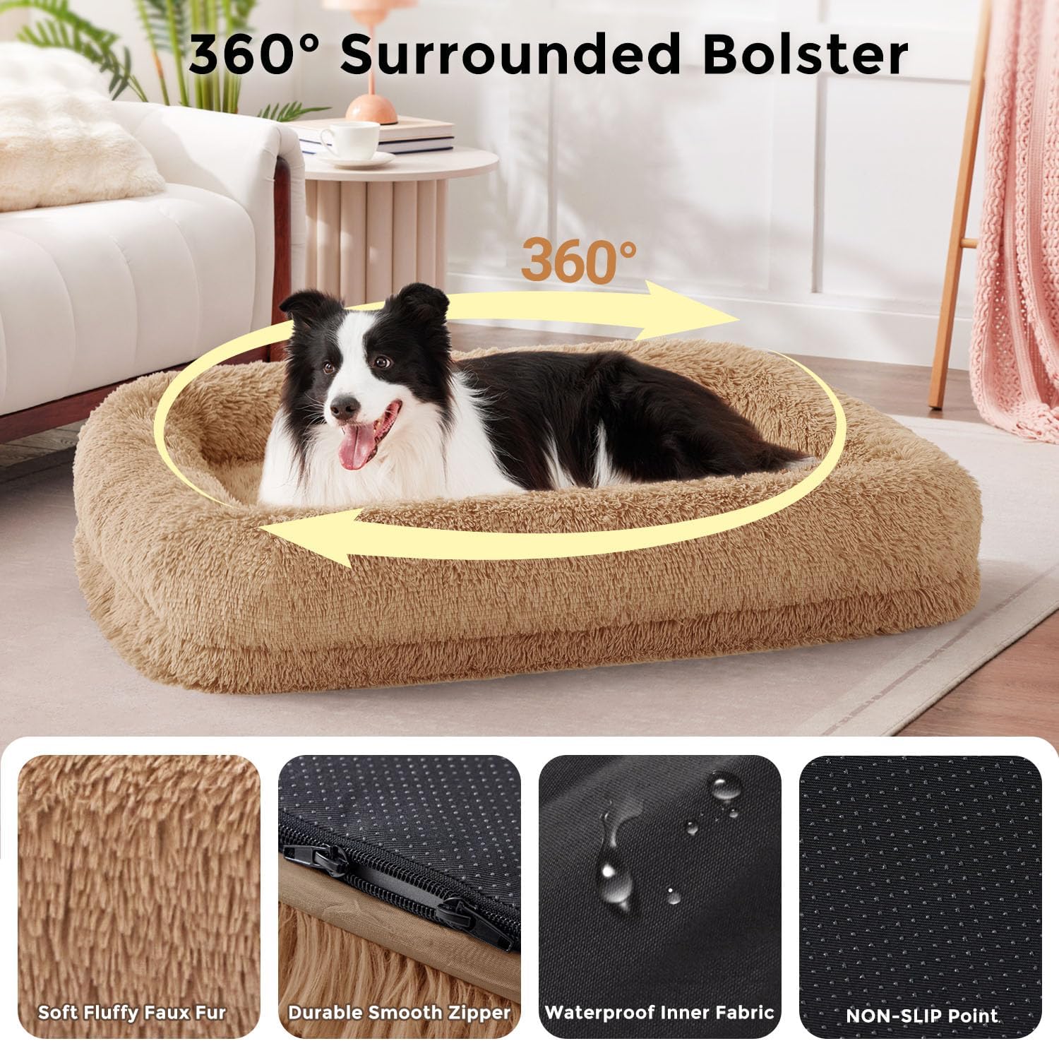 <br> Product Dimensions : 44 x 32 x 8 inches; 12.57 Pounds <br> Date First Available : November 15, 2024 <br> Manufacturer : Apollo <br> ASIN : B0DBLDG6XY <br> Best Sellers Rank: #11,270 in Pet Supplies (See Top 100 in Pet Supplies) #177 in Dog Beds <br> Customer Reviews: 4.6 4.6 out of 5 stars (229) var dpAcrHasRegisteredArcLinkClickAction; P.when('A', 'ready').execute(function(A) { if (dpAcrHasRegisteredArcLinkClickAction !== true) { dpAcrHasRegisteredArcLinkClickAction = true; A.declarative( 'acrLink-click-metrics', 'click', { "allowLinkDefault": true }, function (event) { if (window.ue) { ue.count("acrLinkClickCount", (ue.count("acrLinkClickCount") || 0) + 1); } } ); } }); P.when('A', 'cf').execute(function(A) { A.declarative('acrStarsLink-click-metrics', 'click', { "allowLinkDefault" : true }, function(event){ if(window.ue) { ue.count("acrStarsLinkWithPopoverClickCount", (ue.count("acrStarsLinkWithPopoverClickCount") || 0) + 1); } }); }); <br>【Stylish Plush Design】: This dog bed features a plush faux fur exterior that keeps pets warm during the winter months. Available in various color options, it effortlessly enhances your home decor while providing a cozy retreat for your furry friend.<br>【360-Degree Surround】: Crafted with chopped foam filling around all sides, this dog bed offers a sense of security for pets, effectively reducing anxiety. The enveloping design creates a safe haven, perfect for rest and relaxation.<br>【Superior Softness and Support】: Crafted with egg crate foam, this bed outperforms traditional foam options, delivering superior softness while maintaining essential support. It is designed to cradle your pet, promoting a restful sleep experience.<br>【Waterproof and Easy Care】: The cover features a waterproof lining that protects the foam interior, ensuring it remains in pristine condition. Pet owners will appreciate the easy machine-washable fabric for hassle-free maintenance.<br>【Non-Slip Bottom】: Equipped with non-slip points, this dog bed ensures stability and comfort. Its design prevents the bed from sliding around, allowing pets to settle in securely without the worry of displacement during use.