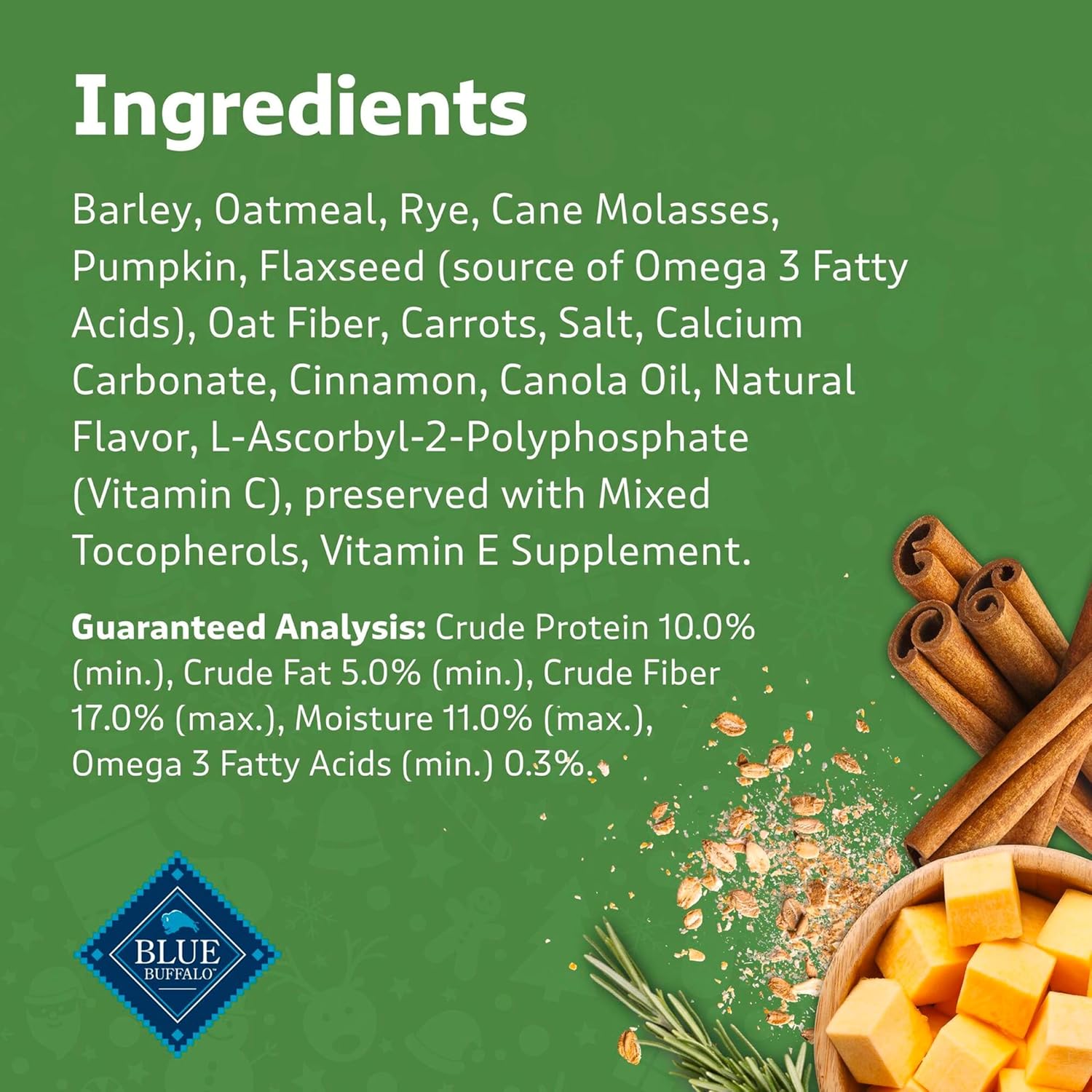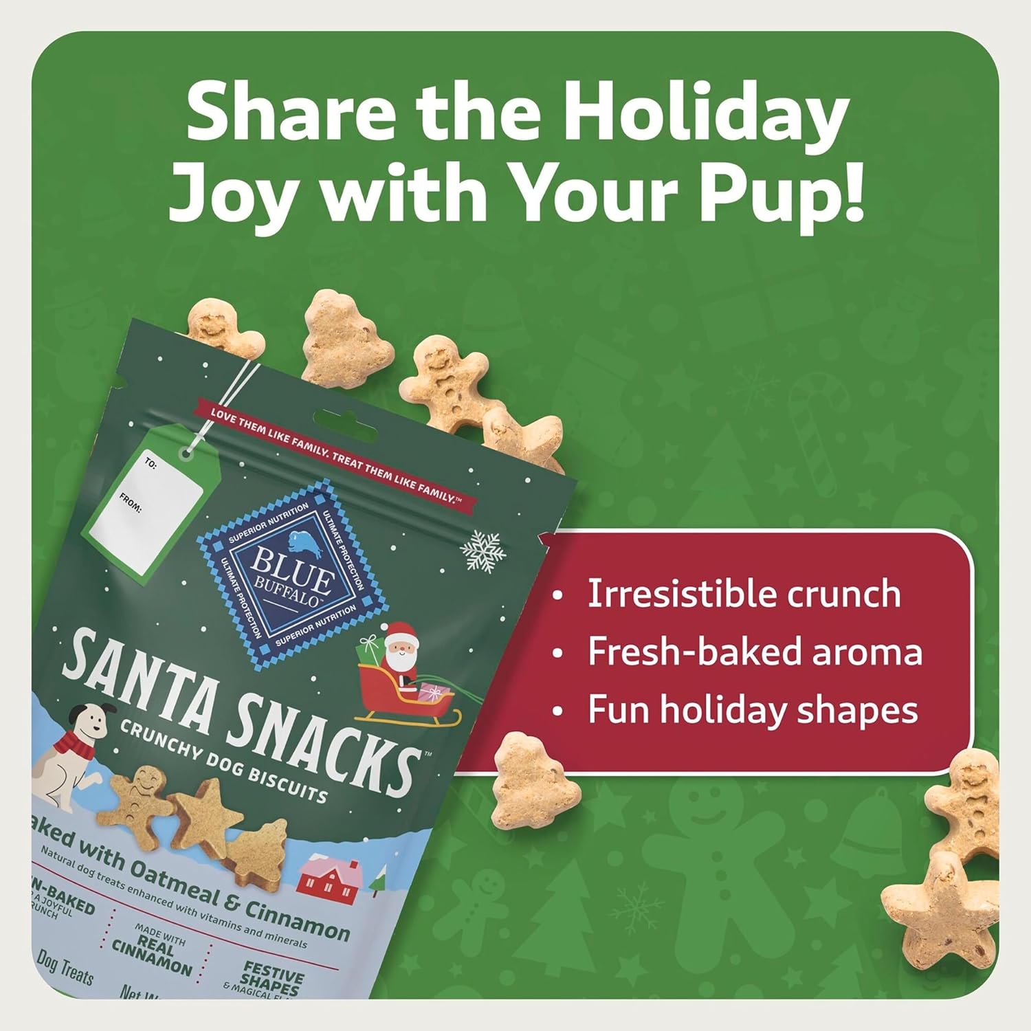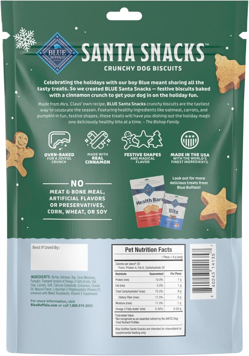 Contains: One (1) 11-oz bag of BLUE Santa Snacks Natural Crunchy Dog Treats Biscuits, Oatmeal & Cinnamon
