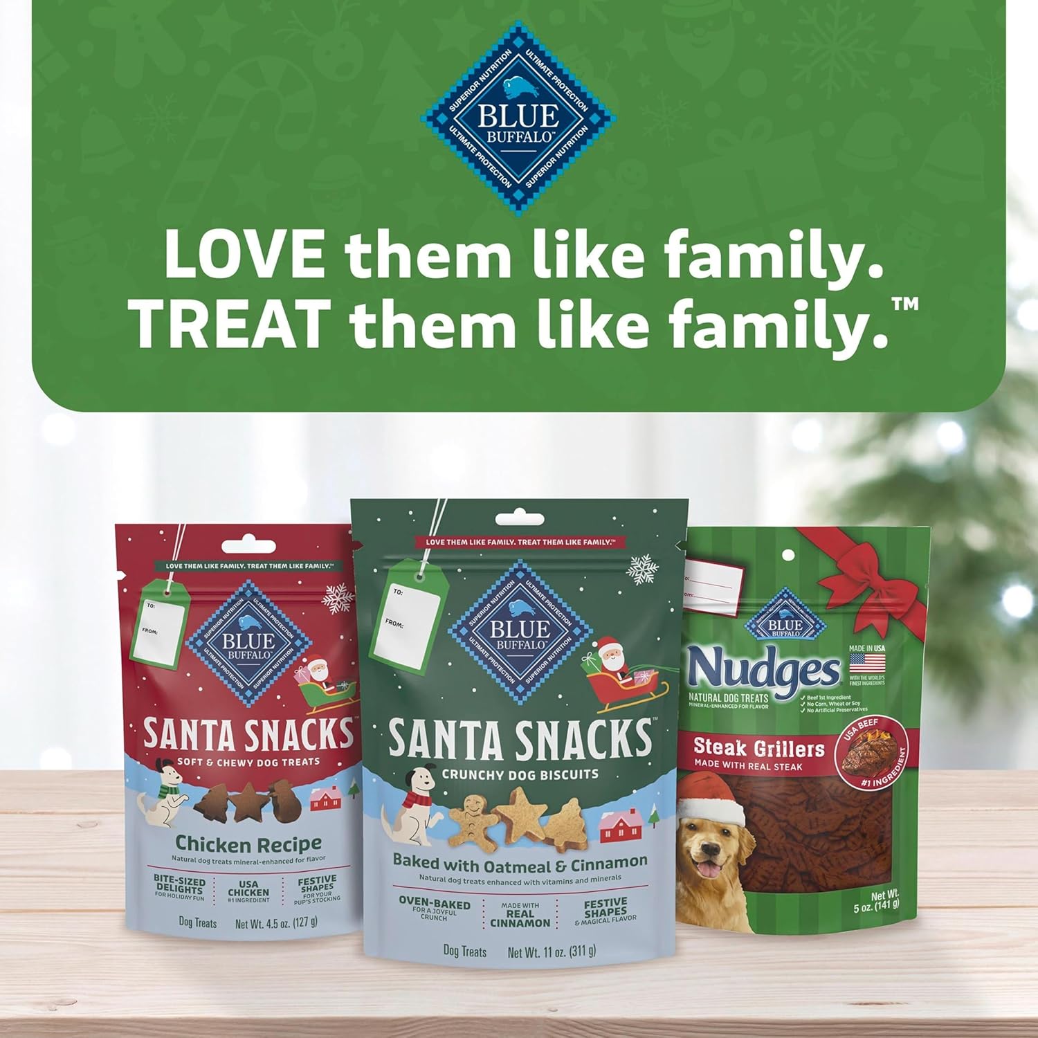 Featuring fun holiday shapes for Santa’s little helper, Blue Buffalo Santa Snacks crunchy dog treats deliver the great taste and satisfying crunch our furry friends love, but without any corn, wheat, or soy. Made with the finest natural ingredients, fortified with Omega 3 and antioxidants, and oven-baked for a big crunch, these treats are as healthy as they are tasty!