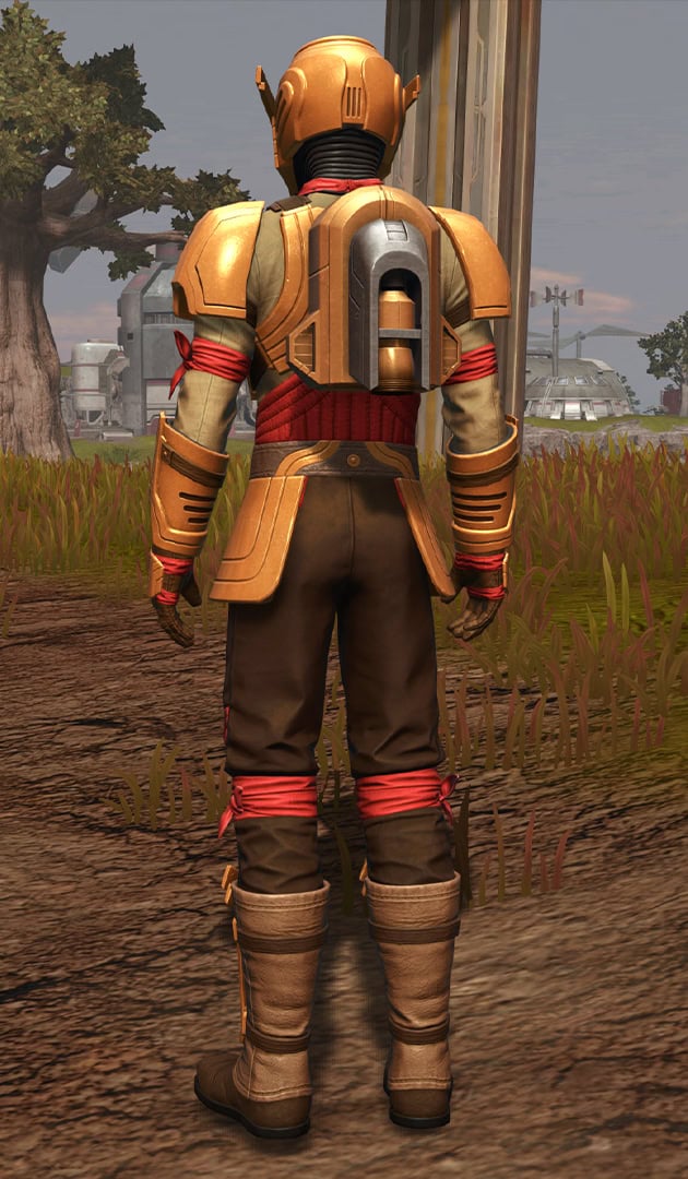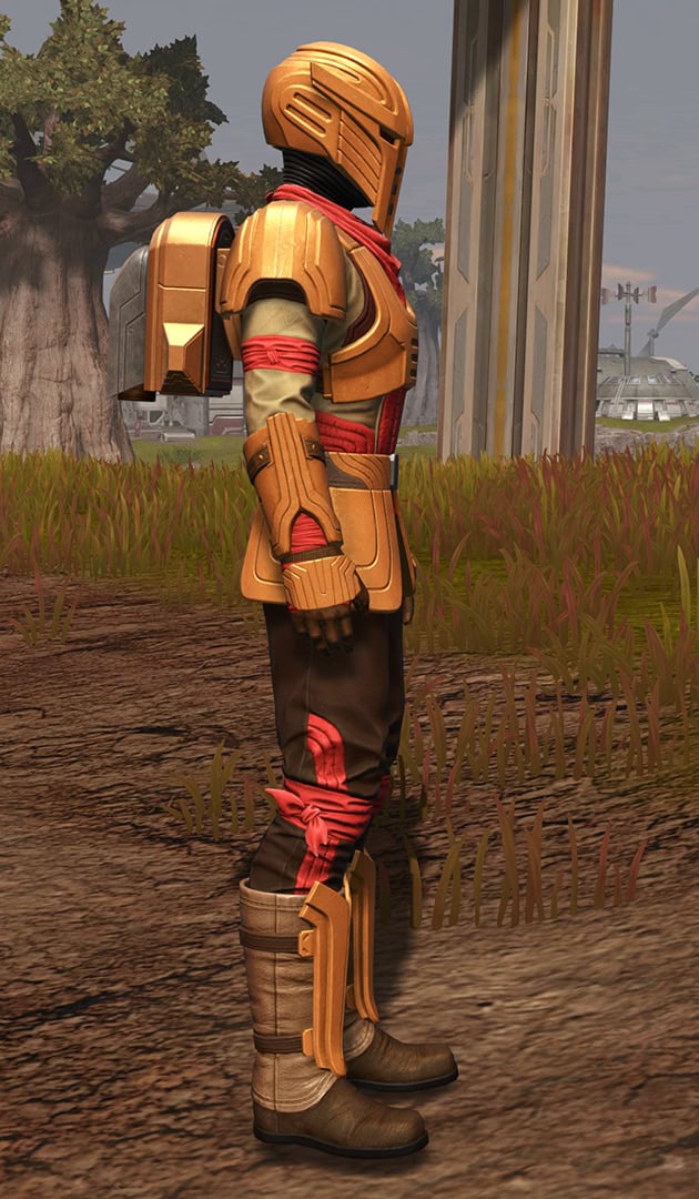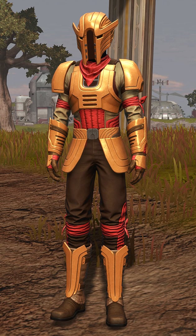 PvP Season 9 is departing from the bird armor of the wild in favor of a sleek, art deco aesthetic that seems to take inspiration from the Crimson Dawn gang from Solo: A Star Wars Story and Star Wars Outlaws. Below, you can see the base version without any VFX.