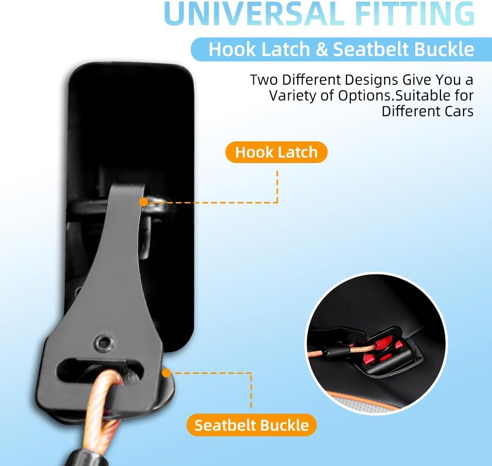 【3-in-1 Multi-Function Seatbelt】Our dog seat belt equipped with 2 different types of car buckles,one of which can be attached to the seatbelt buckle,Can stick directly into the seatbelt slot,The other one is hook latch,Which can attach to the child safety seat and the car trunk,It can be suitable for most cars.You can freely choose the connection location as needed.Dog car harness restraints seat belt suitable for front seat,Back seat and Trunk.