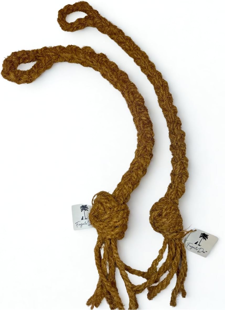 <br> Product Dimensions : 30 x 1.5 x 2 inches; 2 ounces <br> Date First Available : November 1, 2024 <br> Manufacturer : Freya & Dax LLC <br> ASIN : B0DDHY47TB <br> Best Sellers Rank: #79,557 in Pet Supplies (See Top 100 in Pet Supplies) #439 in Dog Rope Toys <br> Customer Reviews: 4.2 4.2 out of 5 stars (16) var dpAcrHasRegisteredArcLinkClickAction; P.when('A', 'ready').execute(function(A) { if (dpAcrHasRegisteredArcLinkClickAction !== true) { dpAcrHasRegisteredArcLinkClickAction = true; A.declarative( 'acrLink-click-metrics', 'click', { "allowLinkDefault": true }, function (event) { if (window.ue) { ue.count("acrLinkClickCount", (ue.count("acrLinkClickCount") || 0) + 1); } } ); } }); P.when('A', 'cf').execute(function(A) { A.declarative('acrStarsLink-click-metrics', 'click', { "allowLinkDefault" : true }, function(event){ if(window.ue) { ue.count("acrStarsLinkWithPopoverClickCount", (ue.count("acrStarsLinkWithPopoverClickCount") || 0) + 1); } }); }); <br>🥥 Made from All-Natural Coconut Husk Fibers – No plastics, no fillers — just handwoven, plant-based goodness your pup will love to chew.<br>🧶 Great for Tug-of-War & Chewing – Sturdy, satisfying texture for interactive tug play and independent gnawing.<br>🦷 Gently Textured Surface – The natural fibers may help support light cleaning of teeth during supervised play. Not intended for aggressive chewing or prolonged gnawing.<br>🌎 Sustainable & Plastic-Free – Fully compostable and biodegradable for a toy that’s better for pets and the planet.<br>🐾 Supervise for Safe Play – Keep an eye on your pup while playing. If they show signs of indigestion, check with your vet.<br>⚠️ Not Indestructible (That’s the Point!) – Because it's natural, some pups will break it down faster — a small trade-off for skipping synthetic materials.