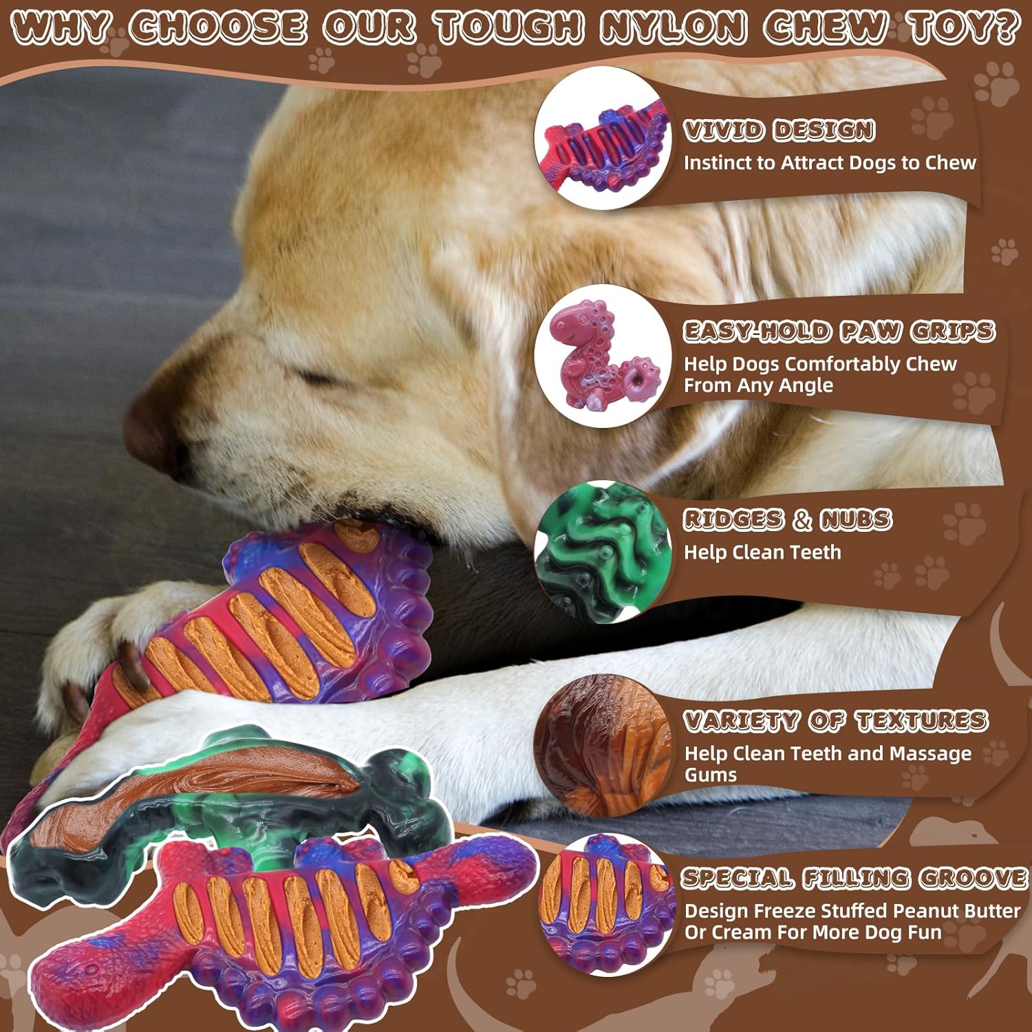<br> Product Dimensions : 5.5 x 4 x 1.7 inches; 1.46 Pounds <br> Item model number : chewtpoy918 <br> Date First Available : September 18, 2025 <br> Manufacturer : Magicorange <br> ASIN : B0FRMMSCJ3 <br> Best Sellers Rank: #18,771 in Pet Supplies (See Top 100 in Pet Supplies) #476 in Dog Chew Toys <br> Customer Reviews: 4.4 4.4 out of 5 stars (9) var dpAcrHasRegisteredArcLinkClickAction; P.when('A', 'ready').execute(function(A) { if (dpAcrHasRegisteredArcLinkClickAction !== true) { dpAcrHasRegisteredArcLinkClickAction = true; A.declarative( 'acrLink-click-metrics', 'click', { "allowLinkDefault": true }, function (event) { if (window.ue) { ue.count("acrLinkClickCount", (ue.count("acrLinkClickCount") || 0) + 1); } } ); } }); P.when('A', 'cf').execute(function(A) { A.declarative('acrStarsLink-click-metrics', 'click', { "allowLinkDefault" : true }, function(event){ if(window.ue) { ue.count("acrStarsLinkWithPopoverClickCount", (ue.count("acrStarsLinkWithPopoverClickCount") || 0) + 1); } }); }); <br>Dog Toys for Aggressive Chewers: Made with tough nylon material, perfect for large/medium dogs and pups who destroy "indestructible" toys easily<br>Irresistible Milk Flavor: Milk-flavored chew toys that encourage healthy chewing habits and keep dogs engaged<br>Pack Value: Set includes 3 different chew toys providing variety and extended playtime for your pet. Mimics dinosaur shape and texture to trigger natural chewing instincts that keeps pups engaged longer than plain toys<br>Dental Health: Textured surface helps clean teeth and massage gums during chewing sessions<br>Versatile Gift for All Dogs: Suitable for small/medium/large dogs across growth stages—great for birthdays/Christmas. Note: Rigid nylon (not soft rubber); supervise use, avoid for senior/sensitive-teeth dogs
