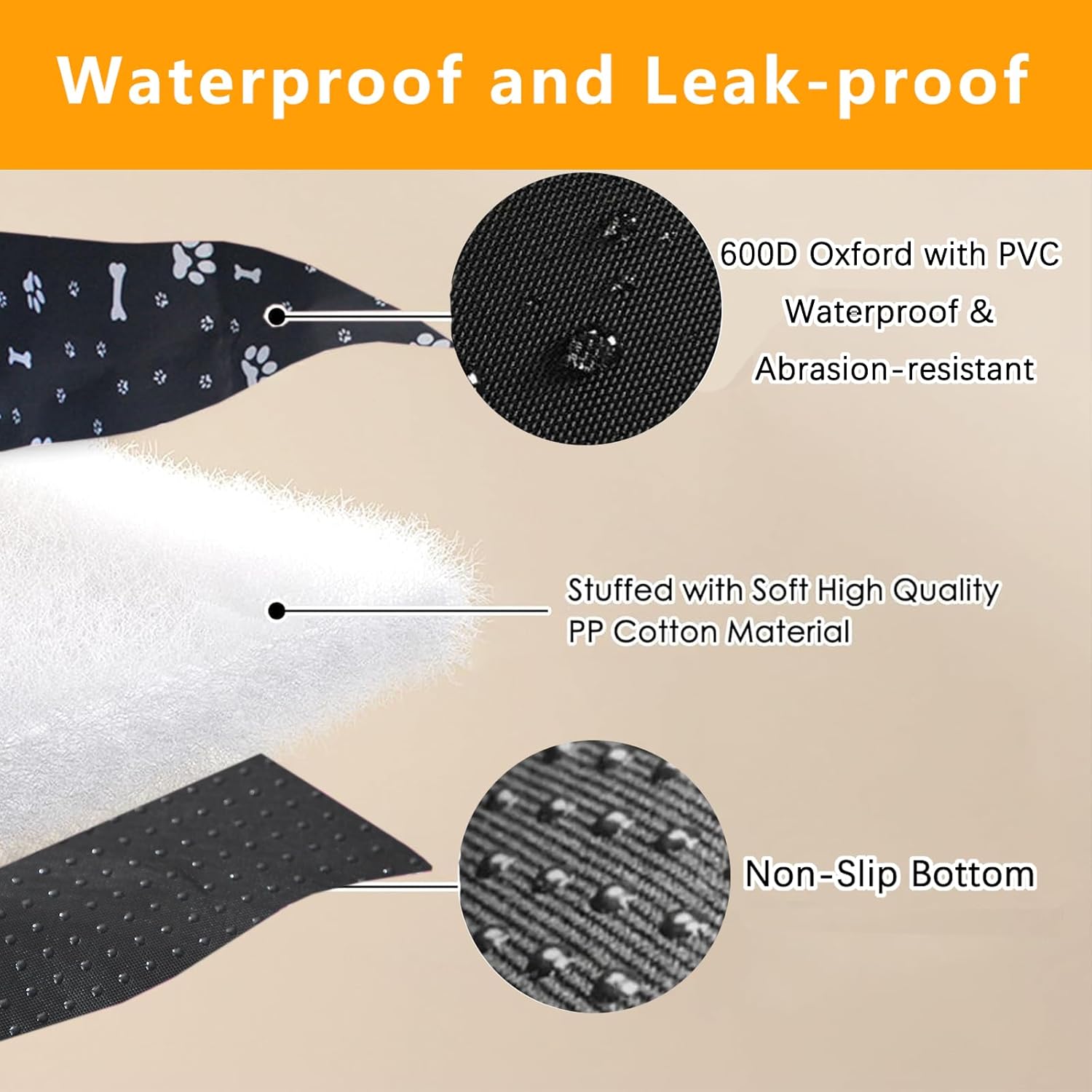 LEAK-PROOF & WATERPROOF: Dog Playpen Bottom Pad Fits for 36 Inch 4 Panels Exercise Pet Playpen. This features a durable 3-layer construction: 600D Oxford fabric with PVC coating, padded PP cotton, and a non-slip bottom. This Dog Playpen Bottom Mat effectively contain urine, preventing any leaks or odors. They keep both puppies and the floor clean and dry.