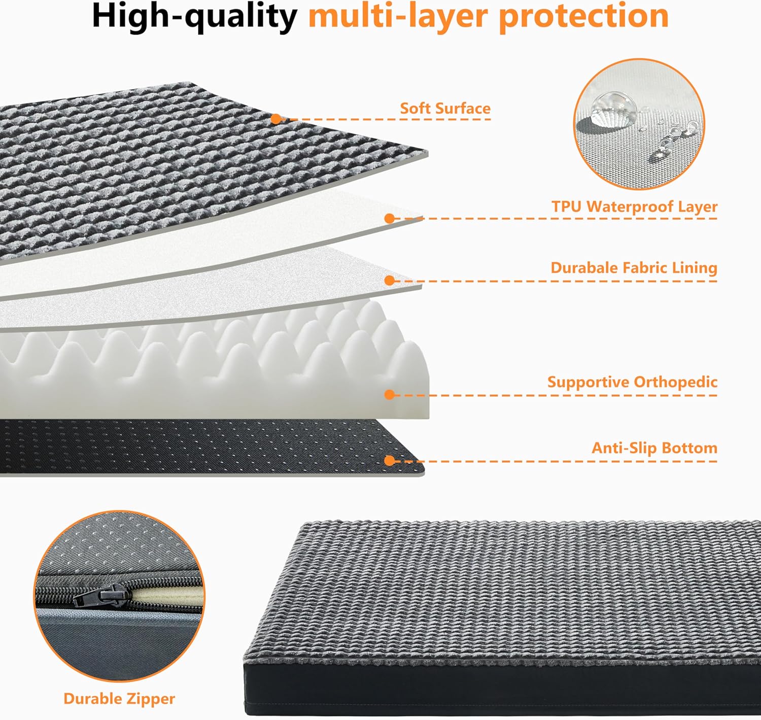 Removable Outer Cover <p class="a-size-small"> The waterproof outer cover is detachable via a zipper for easy machine washing. Keep your dog's bed fresh and clean with minimal effort. </p>