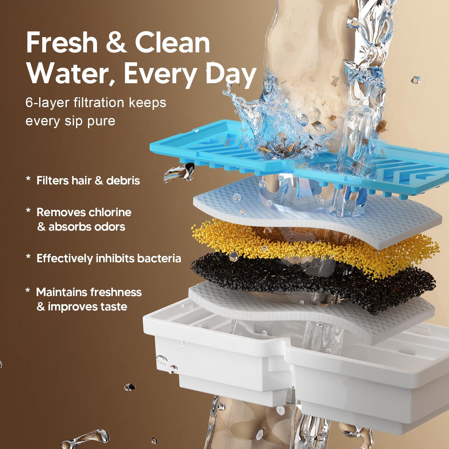<br> Product Dimensions : 11.6 x 5.3 x 11.6 inches; 2 Pounds <br> Item model number : Vol-DSS409 <br> Batteries : 2 AAA batteries required. (included) <br> Date First Available : April 3, 2025 <br> Manufacturer : Voluas <br> ASIN : B0F3JM2954 <br> Best Sellers Rank: #12,094 in Pet Supplies (See Top 100 in Pet Supplies) #41 in Dog Fountains <br> Customer Reviews: 4.3 4.3 out of 5 stars (220) var dpAcrHasRegisteredArcLinkClickAction; P.when('A', 'ready').execute(function(A) { if (dpAcrHasRegisteredArcLinkClickAction !== true) { dpAcrHasRegisteredArcLinkClickAction = true; A.declarative( 'acrLink-click-metrics', 'click', { "allowLinkDefault": true }, function (event) { if (window.ue) { ue.count("acrLinkClickCount", (ue.count("acrLinkClickCount") || 0) + 1); } } ); } }); P.when('A', 'cf').execute(function(A) { A.declarative('acrStarsLink-click-metrics', 'click', { "allowLinkDefault" : true }, function(event){ if(window.ue) { ue.count("acrStarsLinkWithPopoverClickCount", (ue.count("acrStarsLinkWithPopoverClickCount") || 0) + 1); } }); }); <br>Reliable Wireless Dog Fountain: The Voluas Wireless Dog Water Fountain is a battery-powered pet water fountain that ensures a continuous flow of fresh water for your pet, day and night. Featuring a large 4000mAh battery, it provides peace of mind during power outages or short trips. Its wireless design allows flexible placement anywhere in your home, making it easier for your dog to stay hydrated<br>4-Layer Filtration: Equipped with a triple filtration system, this pet water fountain keeps water clean and fresh. Non-woven fabric layer to capture hair and debris; Activated carbon to remove odors and impurities; Ion exchange resin to soften water and reduce heavy metals; Filter sponge to protect the pump and extend its lifespan<br>Engineered for serenity, the whisper-quiet pump operates below 25dB—so the only sound you’ll hear is the soothing flow of water, without disturbing your sleep or startling your pet<br>Durable & Easy to Clean Stainless Steel Water Fountain: The cordless stainless steel pet water fountain design is made from food-grade 304 stainless steel, this pet fountain is BPA-free, rust-resistant, and long-lasting. It’s also easy to assemble in just 6 simple steps and effortless to clean for daily maintenance<br>Extra-Large 1.8-Gallon Tank with Water Level Indicator: With an extra-large 236oz (7L) water capacity, this fountain meets the hydration needs of medium to large dogs or multiple pets for up to a week—no more constant refilling! Plus, the built-in water level window and LED light let you check the water supply at a glance, without removing the lid