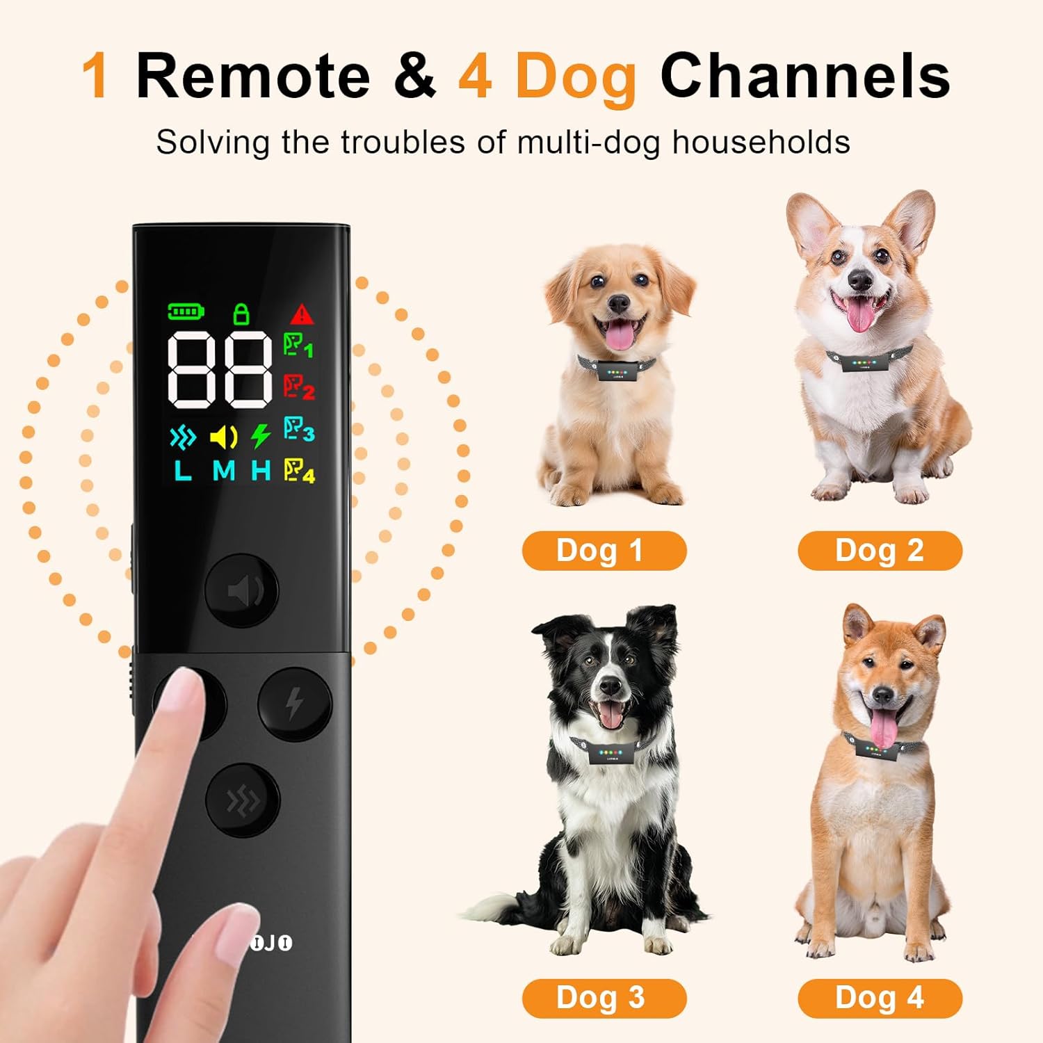 <br> Package Dimensions : 6.46 x 5.04 x 1.61 inches; 3.88 ounces <br> Item model number : MJ2CC25 <br> Batteries : 2 Nonstandard Battery batteries required. (included) <br> Date First Available : November 11, 2024 <br> Manufacturer : LUVMOJO <br> ASIN : B0DMNNF3TQ <br> Best Sellers Rank: #98,858 in Pet Supplies (See Top 100 in Pet Supplies) #558 in Electronic Training Collars <br> Customer Reviews: 4.4 4.4 out of 5 stars (43) var dpAcrHasRegisteredArcLinkClickAction; P.when('A', 'ready').execute(function(A) { if (dpAcrHasRegisteredArcLinkClickAction !== true) { dpAcrHasRegisteredArcLinkClickAction = true; A.declarative( 'acrLink-click-metrics', 'click', { "allowLinkDefault": true }, function (event) { if (window.ue) { ue.count("acrLinkClickCount", (ue.count("acrLinkClickCount") || 0) + 1); } } ); } }); P.when('A', 'cf').execute(function(A) { A.declarative('acrStarsLink-click-metrics', 'click', { "allowLinkDefault" : true }, function(event){ if(window.ue) { ue.count("acrStarsLinkWithPopoverClickCount", (ue.count("acrStarsLinkWithPopoverClickCount") || 0) + 1); } }); }); <br>Complete Dog Training Kit: Remote Control and Collar Included for Ultimate Convenience This A version of the LUVMOJO Dog Training Collar package comes with everything you need to start effective dog training right away, including one professional-grade remote and one waterproof electric collar. It’s designed for dog owners seeking a comprehensive training solution to address common behavior issues like barking, aggression, chasing, and chewing. Whether you have a small dog, medium dog, or large dog, this system is fully adjustable to meet your needs. With its 4-channel design, you can later add more collars (up to 4 total) for multi-dog households.<br>4-in-1 Dog Training Modes with Adjustable Intensity and Advanced Customization This training system offers four highly effective modes: standard beep, three-level vibration (L, M, H), static shock (0-99 levels), and an enhanced boost shock (20% higher). These modes help pet owners provide safe, humane corrections tailored to their dog’s behavior and size. Whether your focus is obedience, recall training, or stopping problem behaviors such as excessive barking, chewing, and jumping, this collar helps dogs learn faster. It’s an ideal training collar for medium dogs, small breeds, and large dogs alike.<br>1640FT Long Range Remote Control with Stable Signal and Fast Response Equipped with an upgraded antenna and advanced transmission chip, the LUVMOJO training collar offers a stable remote connection of up to 1640FT. This long-range control makes it easy to manage your dog’s training whether you’re in the backyard or on an outdoor adventure. The 4 channels on the remote allow for individual or simultaneous training, and the LCD display shows real-time feedback for each connected collar.<br>IP67 Waterproof E Collar and Lightweight Resin Material for Long-Term Comfort The collar is made from premium black resin and features IP67 waterproofing, so it’s safe for dogs to wear during swimming, bathing, or rainy walks. The receiver is lightweight yet durable, designed for all-day wear. The ergonomic remote is compact, thin, and user-friendly, making it easy to control and adjust settings on the go. It’s a great solution for dogs who love outdoor activities and water play.<br>Rechargeable Batteries with Extended Standby Time and Quick Charge Support This dog training collar system is powered by high-capacity rechargeable batteries, offering a 60-day standby for the remote and a 15-day standby for the receiver. A dual USB cable is included for simultaneous charging, compatible with laptops, power banks, and wall adapters. Fast charging ensures you’re always ready for a training session, giving you peace of mind on long trips or busy days.