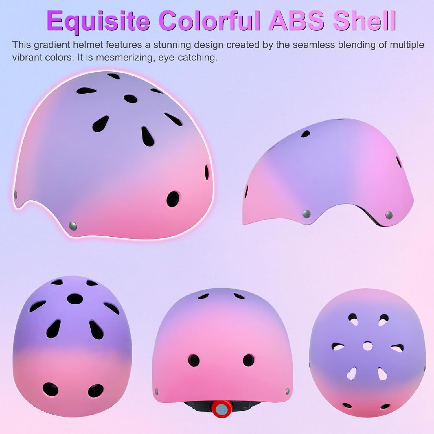 【Color Gradient Kids Helmet】 Our kids skateboard helmet uses color elements of orange, yellow, green, blue, and purple to create a unique rainbow helmet. not only protects the baby but also delights the mood. The stylish bicycle helmet is a great gift for kids 3-8-14 years old.
