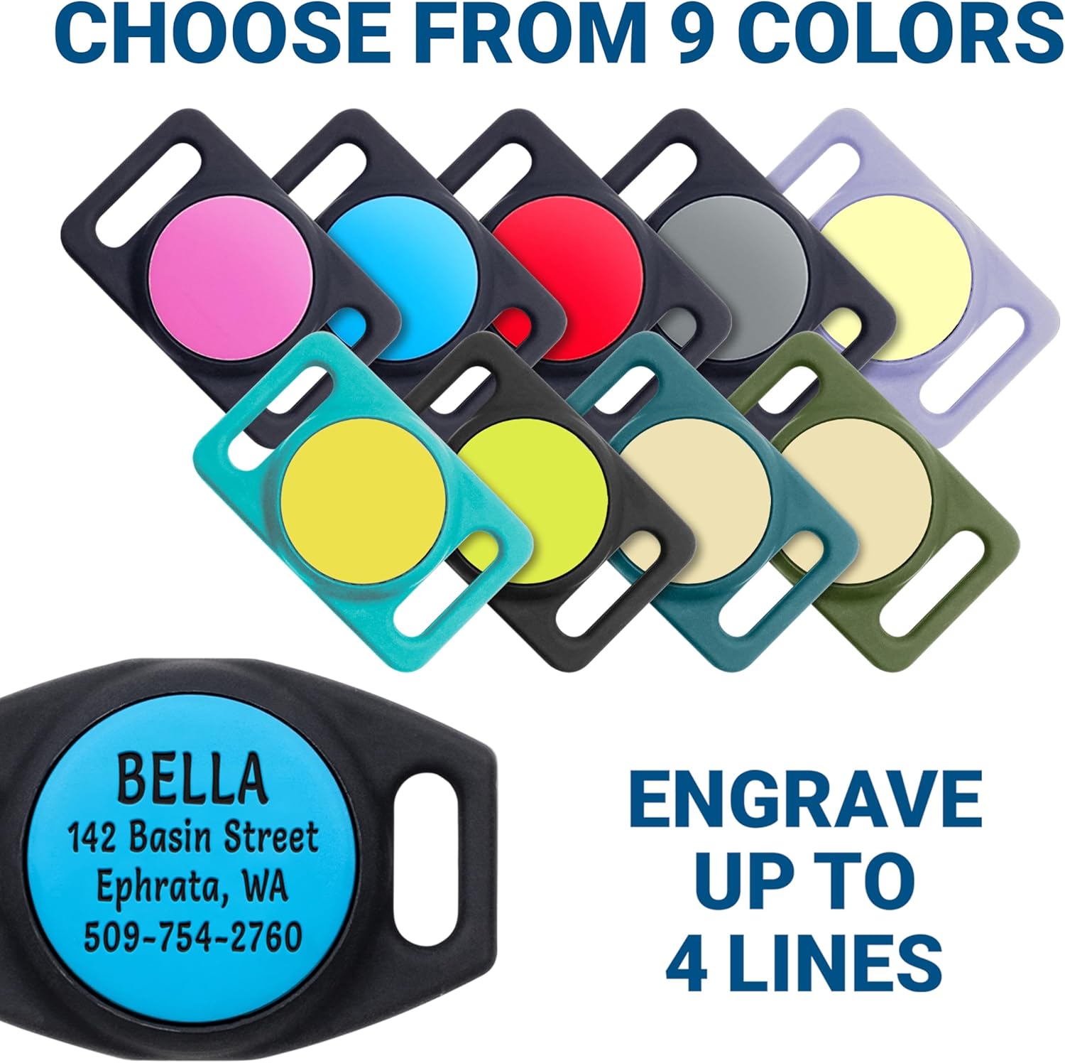 <br> Product Dimensions : 9.8 x 1 x 4.8 inches <br> Item model number : CWF-YSJ02 <br> Date First Available : October 27, 2023 <br> Manufacturer : GoTags <br> ASIN : B0B6DC1L1X <br> Best Sellers Rank: #4,494 in Pet Supplies (See Top 100 in Pet Supplies) #13 in Dog ID Tags <br> Customer Reviews: 4.7 4.7 out of 5 stars (3,967) var dpAcrHasRegisteredArcLinkClickAction; P.when('A', 'ready').execute(function(A) { if (dpAcrHasRegisteredArcLinkClickAction !== true) { dpAcrHasRegisteredArcLinkClickAction = true; A.declarative( 'acrLink-click-metrics', 'click', { "allowLinkDefault": true }, function (event) { if (window.ue) { ue.count("acrLinkClickCount", (ue.count("acrLinkClickCount") || 0) + 1); } } ); } }); P.when('A', 'cf').execute(function(A) { A.declarative('acrStarsLink-click-metrics', 'click', { "allowLinkDefault" : true }, function(event){ if(window.ue) { ue.count("acrStarsLinkWithPopoverClickCount", (ue.count("acrStarsLinkWithPopoverClickCount") || 0) + 1); } }); }); <br>Works with most pet collars – flexible openings accommodate different collar sizes. Large size fits collars 3/4 inch to 1 inch wide, while Small size fits collars 5/8 inch wide.<br>Keeps tracker safely secured to the collar, ensuring it stays in place. GPS Tracking & Alerts – Monitor your pet’s location anytime and set alerts if they venture outside.<br>Personalized for Safety – Customize with up to 4 lines of text so your pet’s tracker holder includes important information for their safe return.<br>Made for Comfort – This silicone tag slides on easily and won't cause irritation like metal tags. It's also waterproof and simple to wash.<br>TO ORDER: SELECT SIZE FROM THE ABOVE CHOICES. After selecting size, click CUSTOMIZE NOW to choose color and add your personalization details.