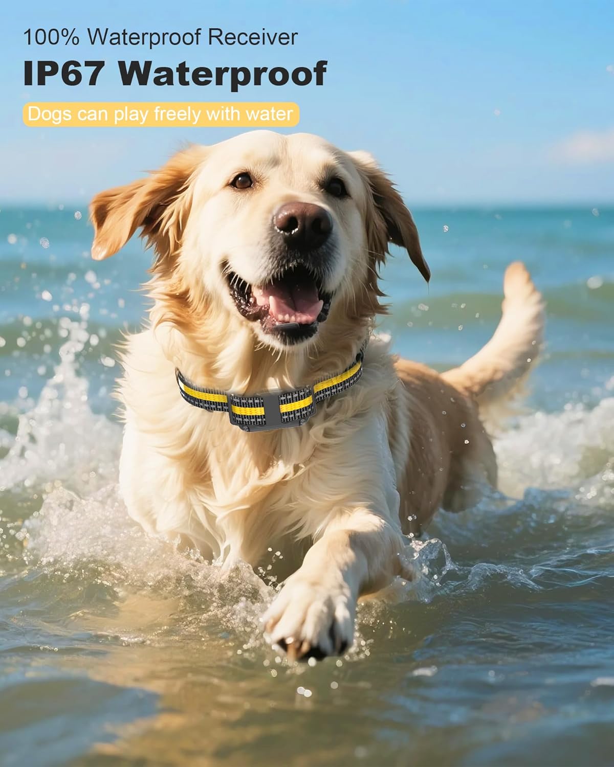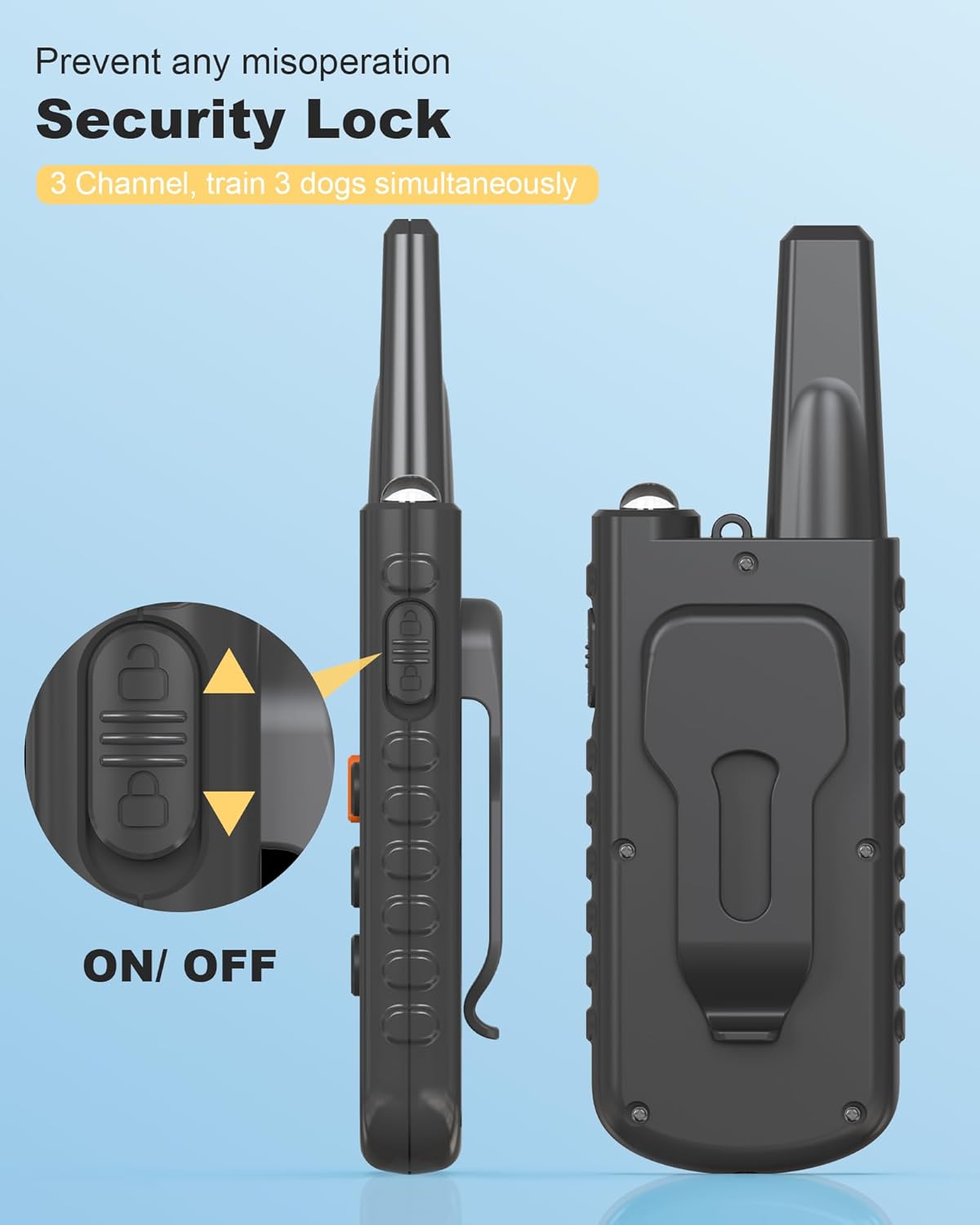 【Waterproof & Safety LockDesign】The IP67-rated waterproof receiver works in any weather, allowing your dog to swim or play in the rain. Our dog shock collar with a remote that features a security keypad lock to prevent accidental activation while carrying it