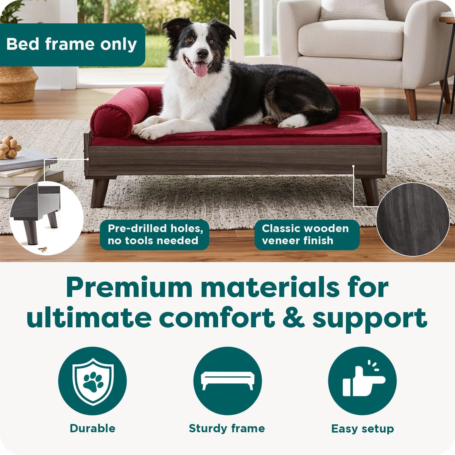 A Premium Look For Your Home: Don’t settle for clunky, utilitarian frames that clash with your home. This beautifully crafted mid-century modern dog bed frame measures 45.9″L x 37″W x 9.8″H and blends seamlessly into your décor. Featuring a stylish gray wash finish and furniture-grade craftsmanship, our frame turns your pet’s rest area into a sophisticated statement piece, finally giving you a dog bed that complements your home.