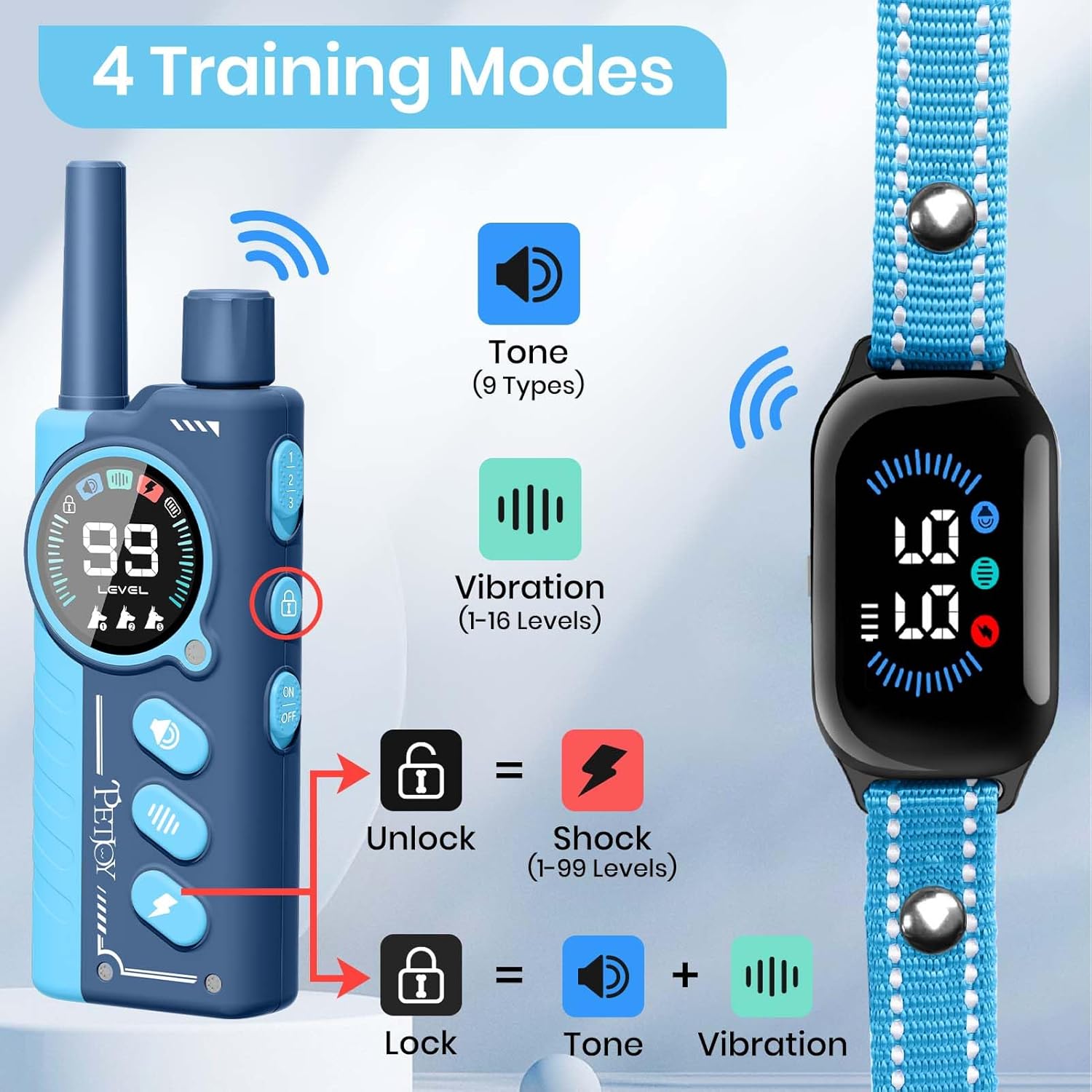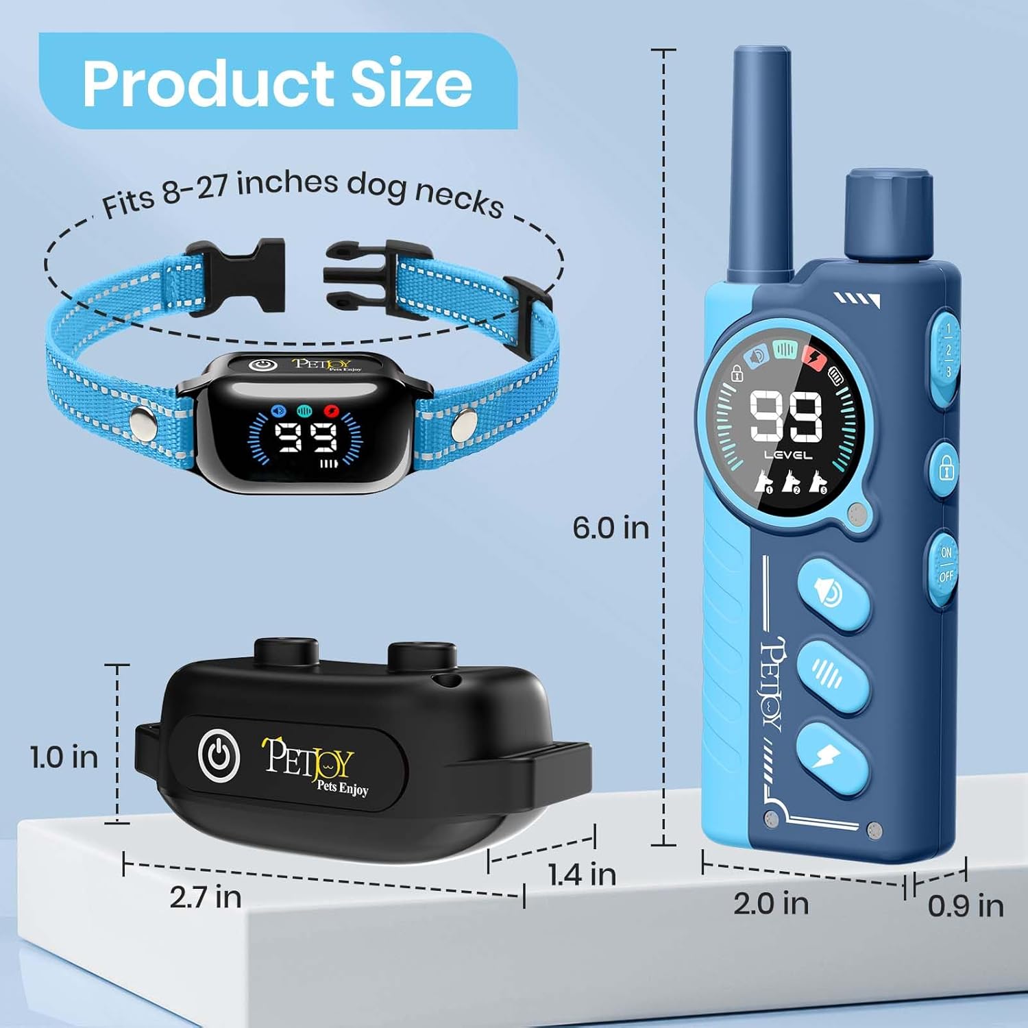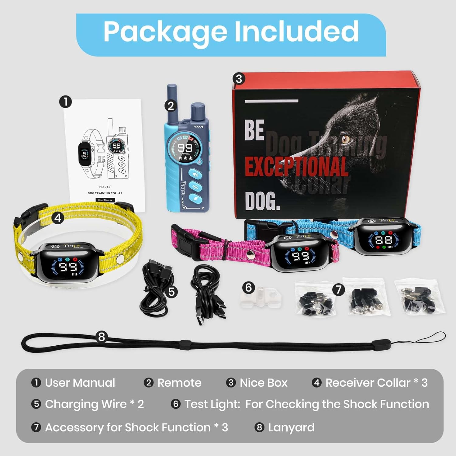 <br> Package Dimensions : 7.4 x 6.14 x 2.24 inches; 1.12 Pounds <br> Batteries : 1 Lithium Polymer batteries required. (included) <br> Date First Available : December 18, 2025 <br> Manufacturer : PetJoy <br> ASIN : B0FZ2PC7HZ <br> Best Sellers Rank: #20,183 in Pet Supplies (See Top 100 in Pet Supplies) #112 in Electronic Training Collars <br> Customer Reviews: 5.0 5.0 out of 5 stars (15) var dpAcrHasRegisteredArcLinkClickAction; P.when('A', 'ready').execute(function(A) { if (dpAcrHasRegisteredArcLinkClickAction !== true) { dpAcrHasRegisteredArcLinkClickAction = true; A.declarative( 'acrLink-click-metrics', 'click', { "allowLinkDefault": true }, function (event) { if (window.ue) { ue.count("acrLinkClickCount", (ue.count("acrLinkClickCount") || 0) + 1); } } ); } }); P.when('A', 'cf').execute(function(A) { A.declarative('acrStarsLink-click-metrics', 'click', { "allowLinkDefault" : true }, function(event){ if(window.ue) { ue.count("acrStarsLinkWithPopoverClickCount", (ue.count("acrStarsLinkWithPopoverClickCount") || 0) + 1); } }); }); <br>【 Train 3 Dogs Separately or Together 】 This shock collar for 3 dogs lets you train each dog individually or all at once using the dog shock collar with remote, so you can easily switch between different training modes anytime through simple settings for flexible, stress-free multi-dog management.<br>【 Shock Lock Mode 】 Choose from 9 tones, 16 vibration levels, and 99 shock intensities on this dog training collar with remote; when Lockable Shock is enabled, pressing the button delivers tone plus vibration only—making it a safe and effective shock collar for large dog or sensitive breeds.<br>【 Slide Safety Lock Prevents Accidental Shocks 】 The remote features a physical slide lock that blocks accidental activation when carried in your pocket or bag, making it a must-have safety feature for any shock collar for large dog owner or busy multi-dog household.<br>【 3-Step Knob Adjustment for Instant Control 】 Press your desired mode—such as Tone, Vibration, or Shock—then push and rotate the knob on this 3 dogs training collar to quickly set your preferred intensity, with no menus or tiny buttons for fast, intuitive operation anywhere.<br>【 IPX7 Waterproof and 90-Day Battery Life 】 This dog training collar with remote features IPX7 waterproofing for rain, baths, and outdoor adventures, with a rechargeable remote that lasts up to 90 days and each receiver collar running up to 30 days—so you never worry about charging or wet conditions.<br>【 4000 ft Range for Total Training Freedom 】 Train confidently from up to 4000 feet away in backyards, parks, hiking trails, or at the beach with this 3 dogs training collar system, which ensures reliable control at long distances—so you never have to chase or shout again.<br>【 2-Year Battery Warranty 】 We know batteries can occasionally be damaged during shipping—leading to reduced lifespan or charging issues—so we proudly offer a full 2-year warranty covering all battery-related problems with your dog training collar with remote.<br>【 Support Beyond Amazon's 30-Day Window 】 Even if your order is past Amazon's 30-day return period, you can always reach out to us with any product issue—and we'll work hard to find the best solution for you and the shock collar for 3 dogs, no matter what.