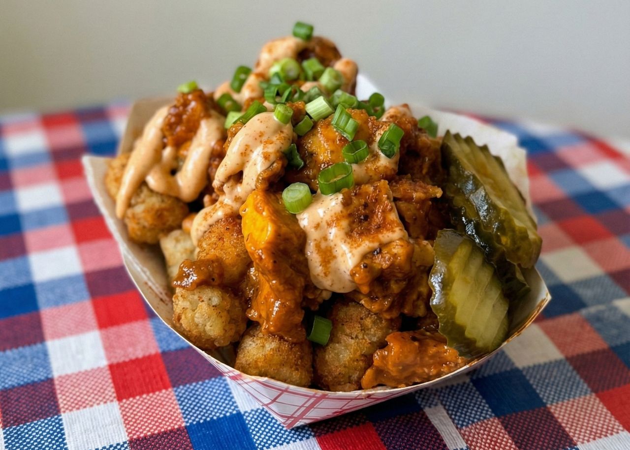 | Nashville Hot Chicken Tots | Peanut Butter Fluff Quesadilla |