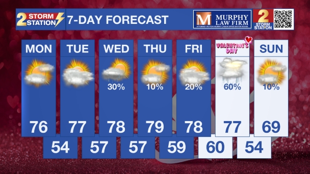Weekend Storms: The latest data indicate a widespread round of showers and thunderstorms moving through on Saturday. It’s one to watch, especially with Valentine’s Day, LSU Baseball, and Mardi Gras parades on the calendar. While exact timing is still uncertain, rain and lightning appear likely at some point during the day or night. Stay connected with the Storm Station this week as the forecast gets ironed out.