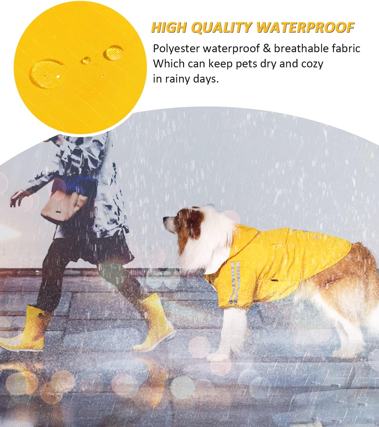 <br> Package Dimensions : 9.06 x 5.2 x 3.66 inches; 8.15 ounces <br> Date First Available : July 20, 2022 <br> Manufacturer : Kickred <br> ASIN : B0B74GZB2D <br> Best Sellers Rank: #137,551 in Pet Supplies (See Top 100 in Pet Supplies) #256 in Dog Raincoats <br> Customer Reviews: 4.1 4.1 out of 5 stars (46) var dpAcrHasRegisteredArcLinkClickAction; P.when('A', 'ready').execute(function(A) { if (dpAcrHasRegisteredArcLinkClickAction !== true) { dpAcrHasRegisteredArcLinkClickAction = true; A.declarative( 'acrLink-click-metrics', 'click', { "allowLinkDefault": true }, function (event) { if (window.ue) { ue.count("acrLinkClickCount", (ue.count("acrLinkClickCount") || 0) + 1); } } ); } }); P.when('A', 'cf').execute(function(A) { A.declarative('acrStarsLink-click-metrics', 'click', { "allowLinkDefault" : true }, function(event){ if(window.ue) { ue.count("acrStarsLinkWithPopoverClickCount", (ue.count("acrStarsLinkWithPopoverClickCount") || 0) + 1); } }); }); <br>【Waterproof Dog Raincoat, Breathable and Warm】The outer layer of this dog raincoat is made of 100% polyester waterproof fabric, the fabric is not easy to wrinkle, not deform, and the texture is firm. With excellent waterproof and breathable function, it keeps your pet dry and warm when walking in cold, wet and rain. It's lightweight and comfortable enough to keep your dog wearing all day. At the same time, the hat helps protect the dog's ears from the rain.<br>【Unique Reflective Strip Design】The back and cuffs of the raincoat are made with super bright reflective strips, and the high visibility reflective strips ensure your dog is more visible and safer at night. Make sure your pet can see at night/dark, this helps avoid traffic accidents. Great for night walks, cold weather, outdoor and indoor use.<br>【ADJUSTABLE AND EASY TO WEAR】The Velcro straps can be adjusted according to your pet's waist width, and the elastic straps ensure the leg position is correct and easy to wear, allowing you to create a perfect and comfortable fit for your pet. The raincoat has holes on the back for easy access to the seat belt and easy to put on and take off. The raincoat has tight seams and is more durable and waterproof than ordinary raincoats. Measure your dog's neck and bust and choose the appropriate size.<br>【PORTABLE AND EASY TO WASH】The hat of the dog raincoat is designed with buttons, which can be easily removed or used alone, easy to clean, support hand wash and machine wash, washable to easily remove any dirt. And the lightweight raincoat clothes are easy to fold, you can easily put the raincoat in your own pocket and take it with you anytime, anywhere.<br>【Fashionable Design】This dog coat is a stylish and practical gift for medium and large dogs. It has a cool design that will make your dog stand out in the rain. Raincoats are available in two colors and various styles to make your pet more charming and make your pet have a good wearing experience in any season. If you have any questions about the product quality, please feel free to contact us, we will reply you within 24 hours.