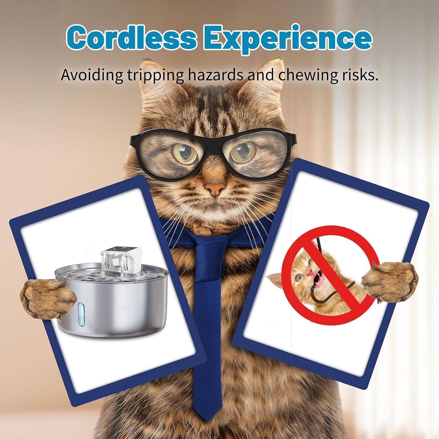 CORDLESS & BATTERY-POWER CONVENIENCE – Rechargeable 5000mAh battery lasts 45-60 days per charge. Perfect for travel or “large dog fountain stainless steel outdoor” setups