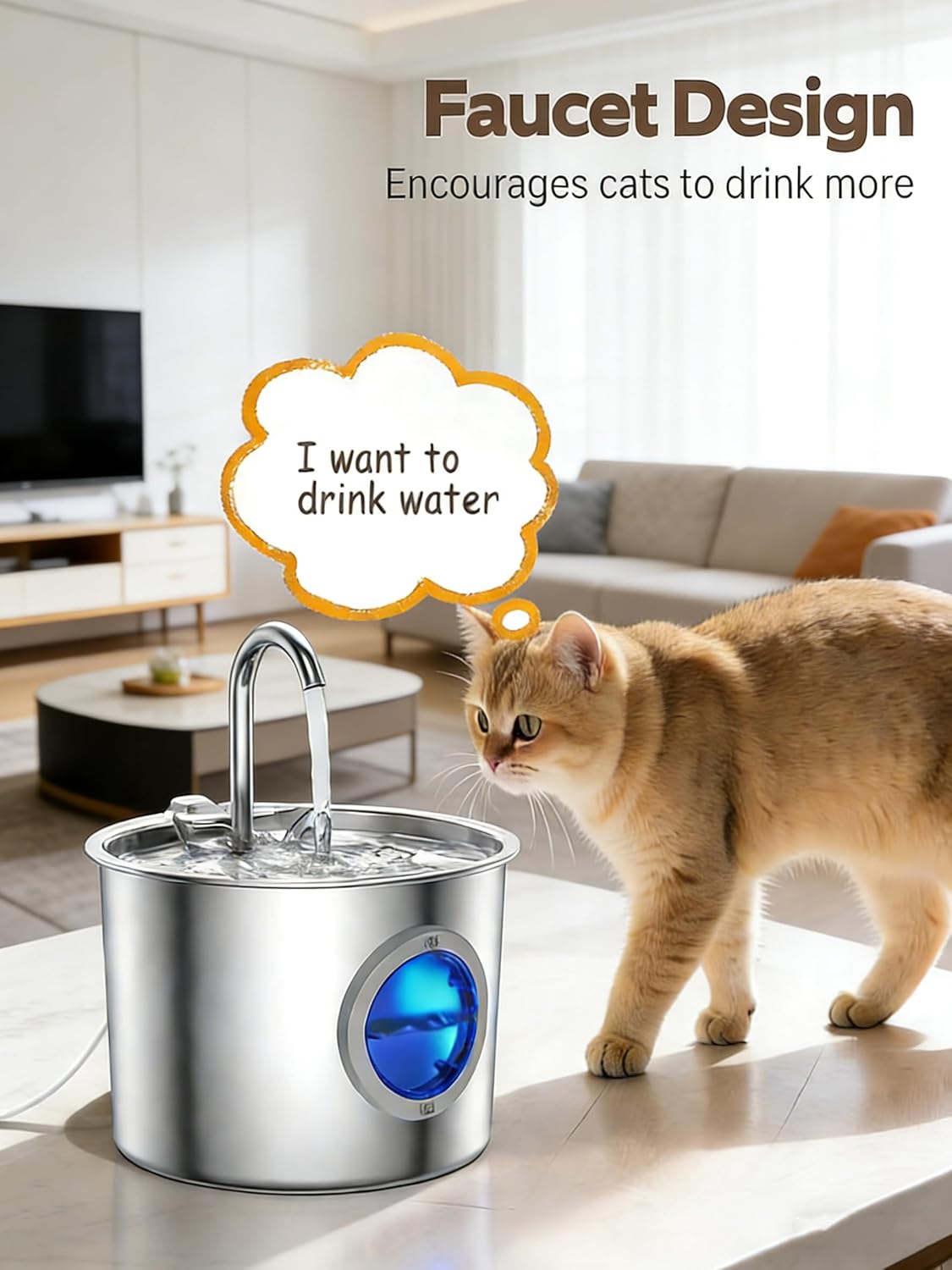 <br> Package Dimensions : 7.2 x 7.17 x 5.39 inches; 1.48 Pounds <br> Item model number : Pwfss01 <br> Date First Available : October 14, 2025 <br> Manufacturer : JLVDXN <br> ASIN : B0FW3BGT8Q <br> Best Sellers Rank: #4,077 in Pet Supplies (See Top 100 in Pet Supplies) #41 in Cat Fountains <br> Customer Reviews: 4.6 4.6 out of 5 stars (106) var dpAcrHasRegisteredArcLinkClickAction; P.when('A', 'ready').execute(function(A) { if (dpAcrHasRegisteredArcLinkClickAction !== true) { dpAcrHasRegisteredArcLinkClickAction = true; A.declarative( 'acrLink-click-metrics', 'click', { "allowLinkDefault": true }, function (event) { if (window.ue) { ue.count("acrLinkClickCount", (ue.count("acrLinkClickCount") || 0) + 1); } } ); } }); P.when('A', 'cf').execute(function(A) { A.declarative('acrStarsLink-click-metrics', 'click', { "allowLinkDefault" : true }, function(event){ if(window.ue) { ue.count("acrStarsLinkWithPopoverClickCount", (ue.count("acrStarsLinkWithPopoverClickCount") || 0) + 1); } }); }); <br>A Thirsty Cat’s Dream: The Elegant Stainless Steel Faucet Fountain ;Imagine a water fountain so inviting, your cat can’t resist taking a sip—again and again. Crafted from premium 304 stainless steel, this isn’t just another pet bowl; it’s a mini water park for your feline friend, where every drop is fresh, clean, and irresistibly fun.<br>Smart Water-Level Window – Always Perfect, Never Dry; Tired of guessing if your cat’s fountain has enough water? JLVDXN’s built-in water-level window lets you check,and refill in seconds. No more running dry, no more pump damage,just effortless hydration for your pet, and peace of mind for you.<br>2.2L Stainless Steel Cat Fountain – Effortless Hydration, Anywhere;Ideal for busy pet owners, this compact fountain holds 5-7 days' water yet fits neatly in any space. The easy-clean, tool-free design makes maintenance simple – just fill, place, and let your cat enjoy fresh, flowing water.<br>"Pure Water, Every Sip – Just Like Nature Intended;Your cat deserves crisp, clean water – so we built a 3-stage filtration system to deliver it:1.Cotton Layer – Traps hair & debris 2.on Exchange Resin – Softens water, reduces impurities 3.ctivated Carbon – Eliminates odors & bad tastes; Plus: A high-density pump sponge catches even the tiniest particles.No more questionable water bowls – just fresh, filtered hydration your feline will love.Because when they drink better, they live better. "<br>"Whisper-Quiet Cat Fountain – Gentle as a Falling Leaf; Our stainless steel fountain runs quieter than a whisper (under 25dB), with just a soft water trickle to soothe your pet. No annoying hums – just peaceful hydration! Bonus: The subtle blue LED glow helps your cat find water easily at night, without disturbing sleep. Because happy pets (and owners) need peace and quiet!"