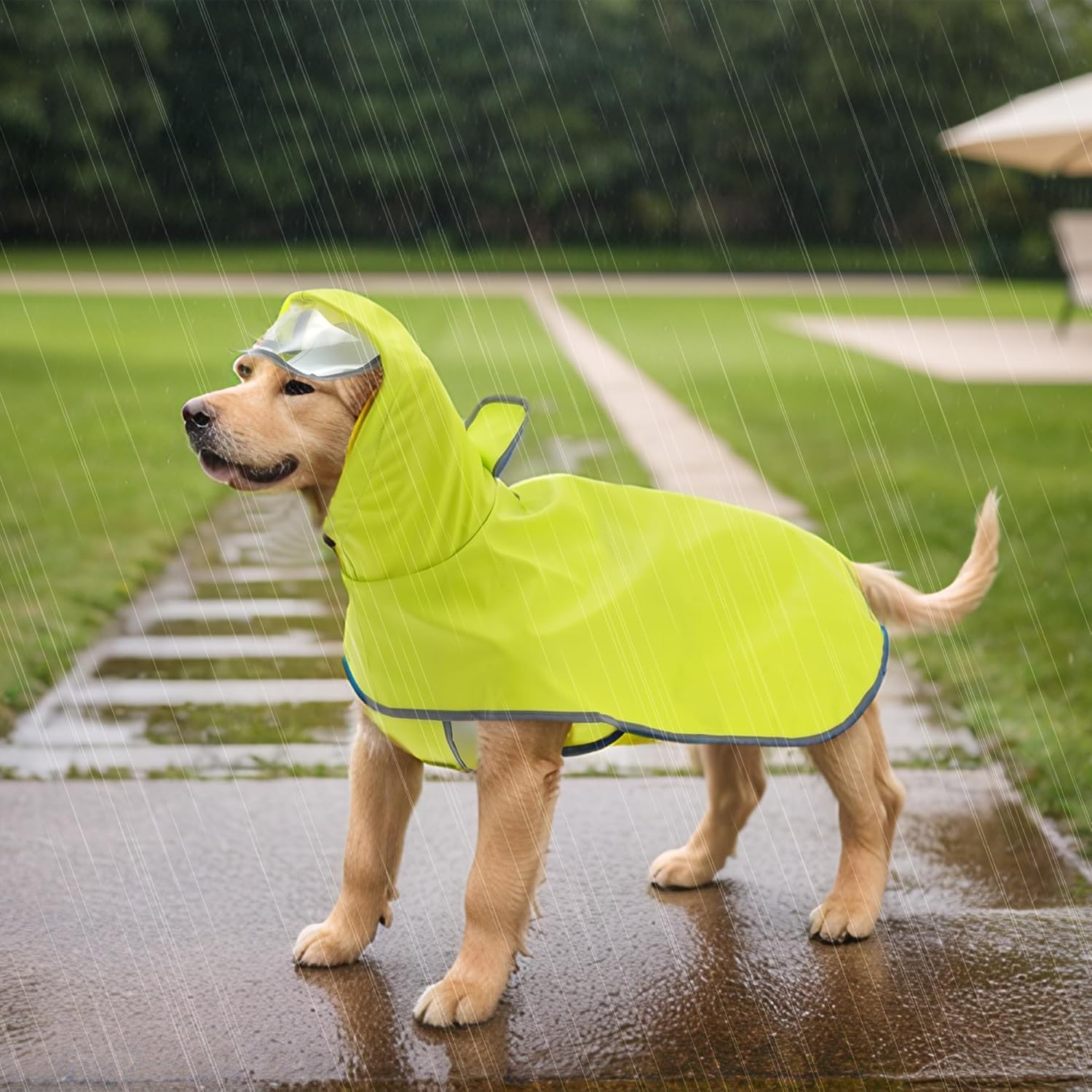 <br> Package Dimensions : 6.3 x 3.15 x 2.36 inches; 5.28 ounces <br> Date First Available : November 20, 2024 <br> Manufacturer : GLIDESMOOTH <br> ASIN : B0DNMYQ7N3 <br> Best Sellers Rank: #402,201 in Pet Supplies (See Top 100 in Pet Supplies) #875 in Dog Raincoats <br> Customer Reviews: 1.0 1.0 out of 5 stars (1) var dpAcrHasRegisteredArcLinkClickAction; P.when('A', 'ready').execute(function(A) { if (dpAcrHasRegisteredArcLinkClickAction !== true) { dpAcrHasRegisteredArcLinkClickAction = true; A.declarative( 'acrLink-click-metrics', 'click', { "allowLinkDefault": true }, function (event) { if (window.ue) { ue.count("acrLinkClickCount", (ue.count("acrLinkClickCount") || 0) + 1); } } ); } }); P.when('A', 'cf').execute(function(A) { A.declarative('acrStarsLink-click-metrics', 'click', { "allowLinkDefault" : true }, function(event){ if(window.ue) { ue.count("acrStarsLinkWithPopoverClickCount", (ue.count("acrStarsLinkWithPopoverClickCount") || 0) + 1); } }); }); <br>Enhanced Visibility: The ultra-bright reflective strips on the front and back of this large dog raincoat ensure that your pet is easily seen in low-light conditions, providing a safer walking experience during nighttime strolls. The reflective design not only adds a stylish touch but also serves as a crucial safety feature for your furry friend.<br>Adjustable Fit: The innovative adjustable design of this dog ponchos allows you to customize the fit to your dog's unique shape. With adjustable waist and abdomen straps, as well as elastic cuffs on the limbs, this rain jacket ensures a snug and comfortable fit without restricting your dog's movements. Say goodbye do ill-fitting raincoats and to a fit that your pet will love.<br>Convenient Control: The back leash hole is strategically placed for ease of use, allowing you to quickly attach a leash or safety belt for added control during walks. The clear transparent hood design not only protects your pet from the rain but also ensures that their vision remains unobstructed, making outdoor adventures more enjoyable for both you and your dog.<br>Stain-Resistant Design: Thanks to the added dirt and moisture guard at the neckline and the practical buckle design, this raincoat offers comprehensive protection against wetness. The thoughtful design elements make dressing and undressing a breeze, so you can spend less time fussing with your dog's outfit and more time enjoying your time together outdoors。<br>Premium Nylon Fabric: Crafted from great-quality nylon coating material, this rain jacket is lightweight, durable, and easy to clean. The tear-resistant fabric provides waterproof protection, keeping your pet dry and comfortable in inclement weather. Treat your furry companion to a luxurious wearing experience with this top-of-the-line raincoat.
