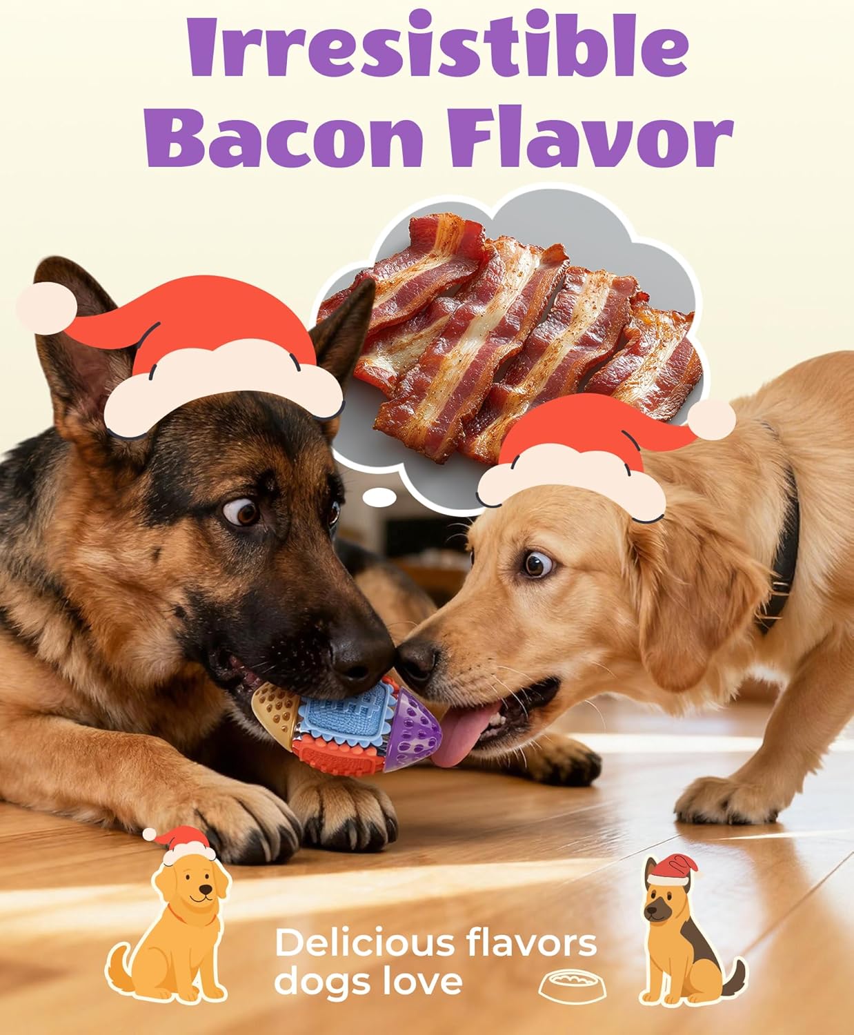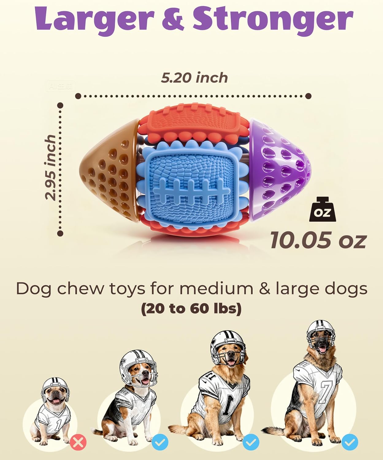 <br> Product Dimensions : 6.99 x 4.12 x 3.14 inches; 9.91 ounces <br> Item model number : Dog ChewToy <br> Date First Available : December 5, 2025 <br> Manufacturer : Zinhand-PSGGQ <br> ASIN : B0F8QD91SY <br> Best Sellers Rank: #83,968 in Pet Supplies (See Top 100 in Pet Supplies) #1,410 in Dog Chew Toys <br> Customer Reviews: 3.9 3.9 out of 5 stars (76) var dpAcrHasRegisteredArcLinkClickAction; P.when('A', 'ready').execute(function(A) { if (dpAcrHasRegisteredArcLinkClickAction !== true) { dpAcrHasRegisteredArcLinkClickAction = true; A.declarative( 'acrLink-click-metrics', 'click', { "allowLinkDefault": true }, function (event) { if (window.ue) { ue.count("acrLinkClickCount", (ue.count("acrLinkClickCount") || 0) + 1); } } ); } }); P.when('A', 'cf').execute(function(A) { A.declarative('acrStarsLink-click-metrics', 'click', { "allowLinkDefault" : true }, function(event){ if(window.ue) { ue.count("acrStarsLinkWithPopoverClickCount", (ue.count("acrStarsLinkWithPopoverClickCount") || 0) + 1); } }); }); <br>Built for Long-Lasting Play:This dog chew toys is made of nylon and rubber, so it stands up to even your pup’s most enthusiastic gnawing. Its sturdy structure ensures it remains a favorite chew for your dog, playtime after playtime.<br>Suitable for Dogs Weighing 20-70 Pounds: This dog toys for aggressive chewers is specifically designed for medium to large dogs. Its size and durability are precisely tailored to the physiological characteristics of medium to large dogs, ensuring a comfortable and enjoyable chewing feeling every time. It can withstand the chewing of medium to large dog breeds such as Golden Retrievers, Labradors, German Shepherds, and Rottweilers.<br>Christmas-Exclusive Pet Gift: When the Christmas tree is piled high with gifts, don’t forget your furry family member! This tough dog toys is designed specifically for Christmas—Whether you nestle it into a stocking as a festive surprise or place it next to your Christmas decor, it’ll let your pup feel the cheer of the holidays and create a one-of-a-kind Christmas moment just for them.<br>Every Dog Deserves Our Brand's Fun: We believe every dog deserves a long companion.our indestructible dog toys provide endless fun,true companionship isn't clinging leashes,but shared trust.Ther're designed to keep your furry friend entertained,active and emotionally fulfilled,even when you're not around.<br>Keep Your Dog Mentally & Physically Active: Dogs chew to relieve stress, teethe, or stay busy—give them a better outlet with this tough dog toys for aggressive chewers! When you play with your pup using this chew toys, you redirect their energy from shoes or furniture to a fun alternative. Important note: Not intended for throwing—keep the fun hands-on!<br>Irresistible Bacon Scent: Anxious dogs find comfort in familiar scents—and bacon is a hit favorite! This indestructible dog toys for aggressive chewers' bacon aroma helps calm nervous pups during you’re away. It’s a cozy, reassuring toy that smells like something they love.<br>Multicolored Dog Chew Toy Captivates Your Pup: Dogs see blue and orange more vividly than other hues, and our football chew toy leverages this natural visual preference! The high-contrast multicolored hard dog chew toys is impossible for your medium/large dog to ignore – it’ll immediately improve their drive to play, turning mealtime downtime or lazy afternoons into engaging play sessions.