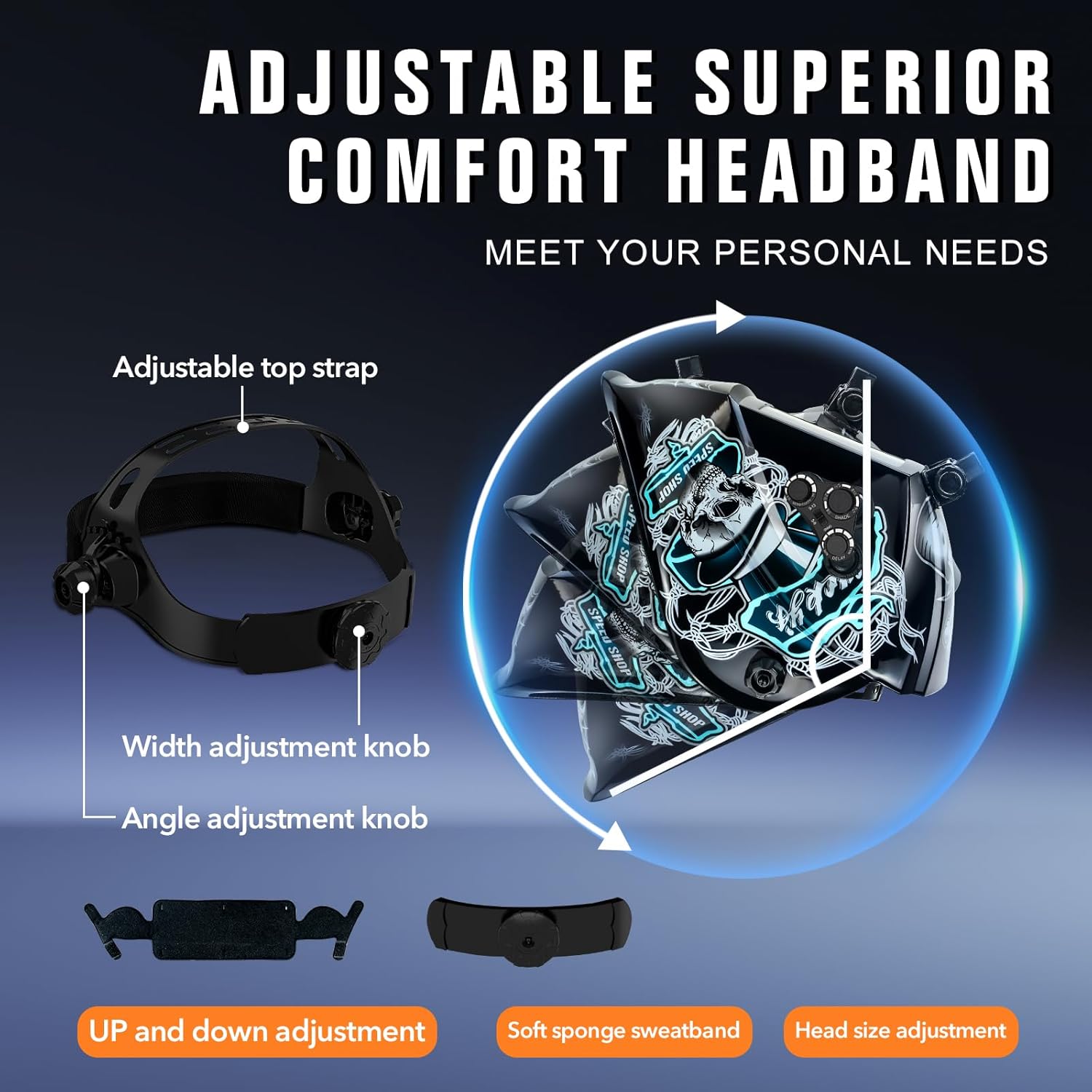 【Adjustable welding mask】 TRQWH welding helmet is ergonomically designed to provide ample internal space and easy to operate, with knobs on both sides to adjust the angle and knobs on the back to adjust the tightness of the headband to fit different people’s heads. True color helmet is well-made, ultra-light weight, thickened sponge on the forehead and ear area, absorbing sweat, anti-slip, breathable, comfortable even for long hours of work.