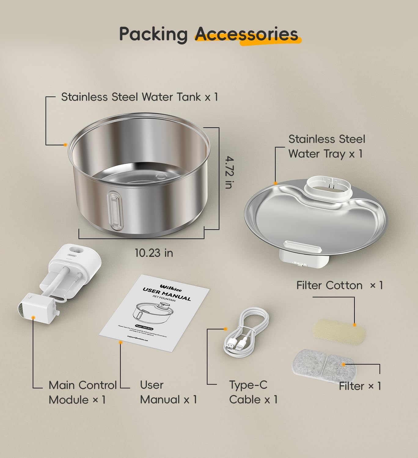 <br> Package Dimensions : 11.34 x 11.3 x 5.87 inches; 2.76 Pounds <br> Item model number : WK00FS40PL-DE-W1 <br> Batteries : 1 Nonstandard Battery batteries required. (included) <br> Date First Available : January 14, 2026 <br> Manufacturer : NEW-BUND TECHNOLOGY CO., LIMITED <br> ASIN : B0FY52X8GL <br> Best Sellers Rank: #26,731 in Pet Supplies (See Top 100 in Pet Supplies) #430 in Cat Fountains <br> Customer Reviews: 4.6 4.6 out of 5 stars (55) var dpAcrHasRegisteredArcLinkClickAction; P.when('A', 'ready').execute(function(A) { if (dpAcrHasRegisteredArcLinkClickAction !== true) { dpAcrHasRegisteredArcLinkClickAction = true; A.declarative( 'acrLink-click-metrics', 'click', { "allowLinkDefault": true }, function (event) { if (window.ue) { ue.count("acrLinkClickCount", (ue.count("acrLinkClickCount") || 0) + 1); } } ); } }); P.when('A', 'cf').execute(function(A) { A.declarative('acrStarsLink-click-metrics', 'click', { "allowLinkDefault" : true }, function(event){ if(window.ue) { ue.count("acrStarsLinkWithPopoverClickCount", (ue.count("acrStarsLinkWithPopoverClickCount") || 0) + 1); } }); }); <br>Cordless Freedom: Place anywhere: keep your kitty hydrated without outlet limits. WILKIEE water fountain for dogs inside features a built-in 5000 mAh battery that provides up to 60 days of fresh, filtered water on a single charge<br>Triple Water Modes: When your cat approaches within 6-8 feet, it automatically releases a 15-second fresh water stream — entices your pet cat to drink more. Switch easily between 3 modes with one button: ① Smart Sensing ② Timed Flow ③ Continuous (Plug-In )<br>Pet-safe & Easy Cleaning: Our stainless steel dog fountain water bowl with 6 replacement filters making maintenance easier and more cost-effective. Made with food grade 304 stainless steel, this water dispenser has better firm motor to make the product last for a long time; The stainless steel design lets you quickly disassemble and effortless cleaning - no hard-to-reach corners or nasty buildup<br>1.45 Gal Extra-Large Capacity: With its extra-wide drinking area for multi-pet sharing and effective spill-resistant design, automatic water dispenser for dogs keeps hydration social and your floors clean. Backed by a 1.45gal (186 oz) large capacity, it delivers a full week’s water supply, freeing you from daily refills<br>Purity in Every Drop: This 6-stage filtration cat fountain delivers fresher, oxygen-rich water — free from hair, sediment, dirt, and other impurities. The advanced filter combines kdf, activated carbon, lonic resin, maifan stone, tourmaline, coconut activated charcoal and cotton that encourages your cat to drink more<br>25 dB Ultra-Quiet: This battery-operated pet water fountain lets you sleep soundly—even bedside. Its wide spout and upgraded pump deliver a gentle, stream-like flow, so your fur babies can drink comfortably without disrupting your sleep