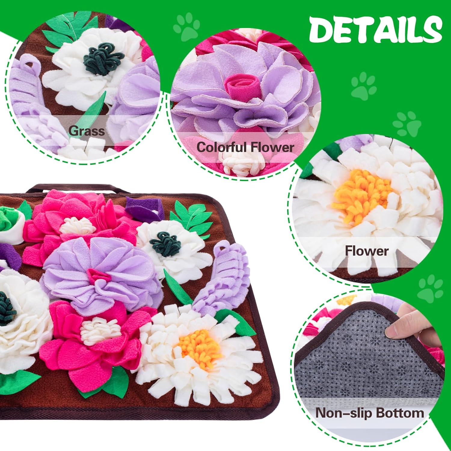 Non-slip Bottom <p> Sniff mat comes with a slip-resistant back and a strap with a buckle that could be tied to a table foot when in use. </p>