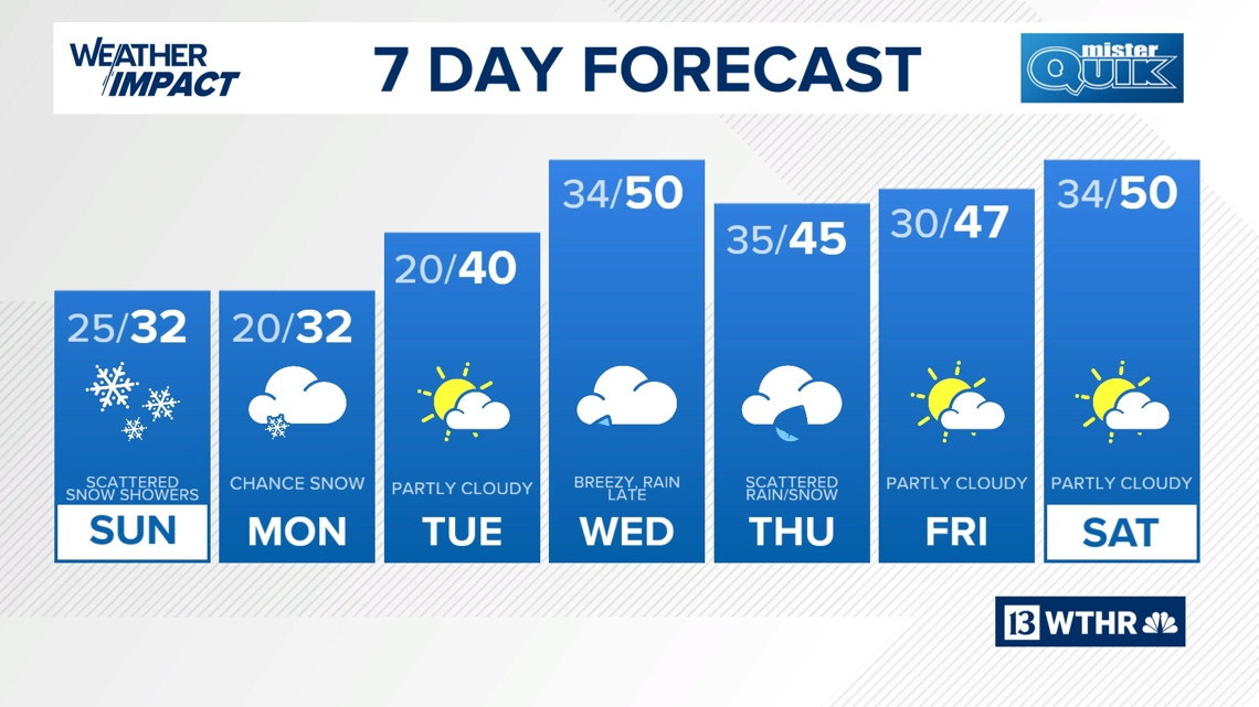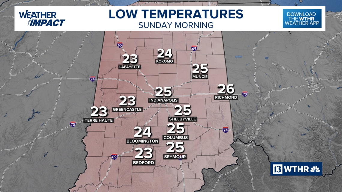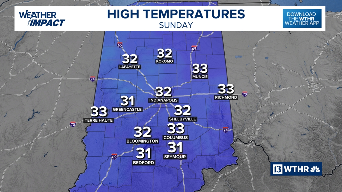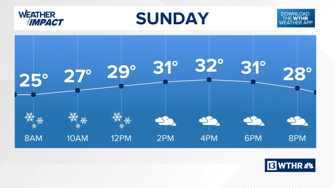 A chilly weekend is expected to bring a chance of light snow on Sunday, though most of Indiana can expect less than an inch of accumulation.