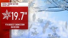 Central Park recorded 19.7 inches of snow as of Monday afternoon, marking its ninth-biggest snowfall in recorded history.