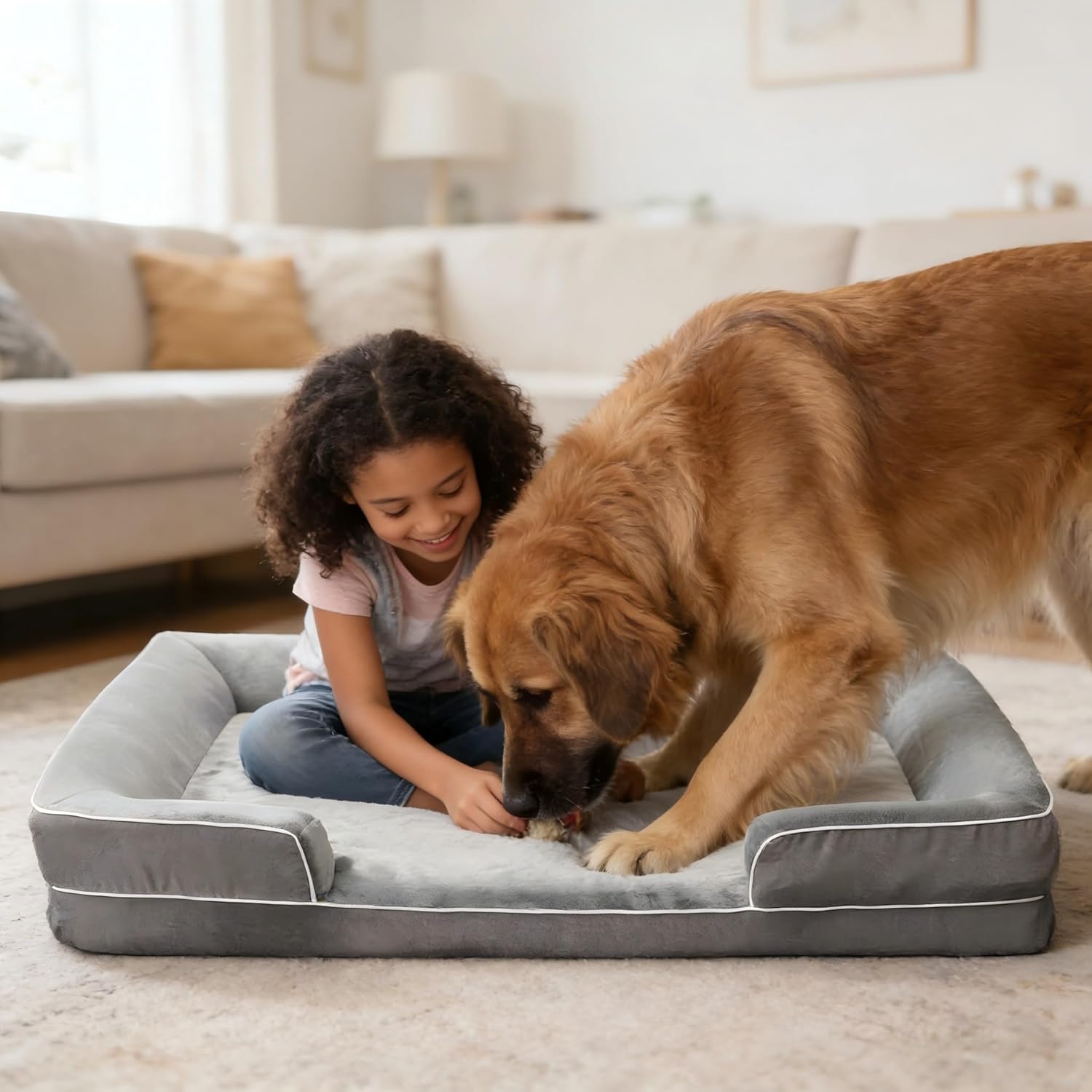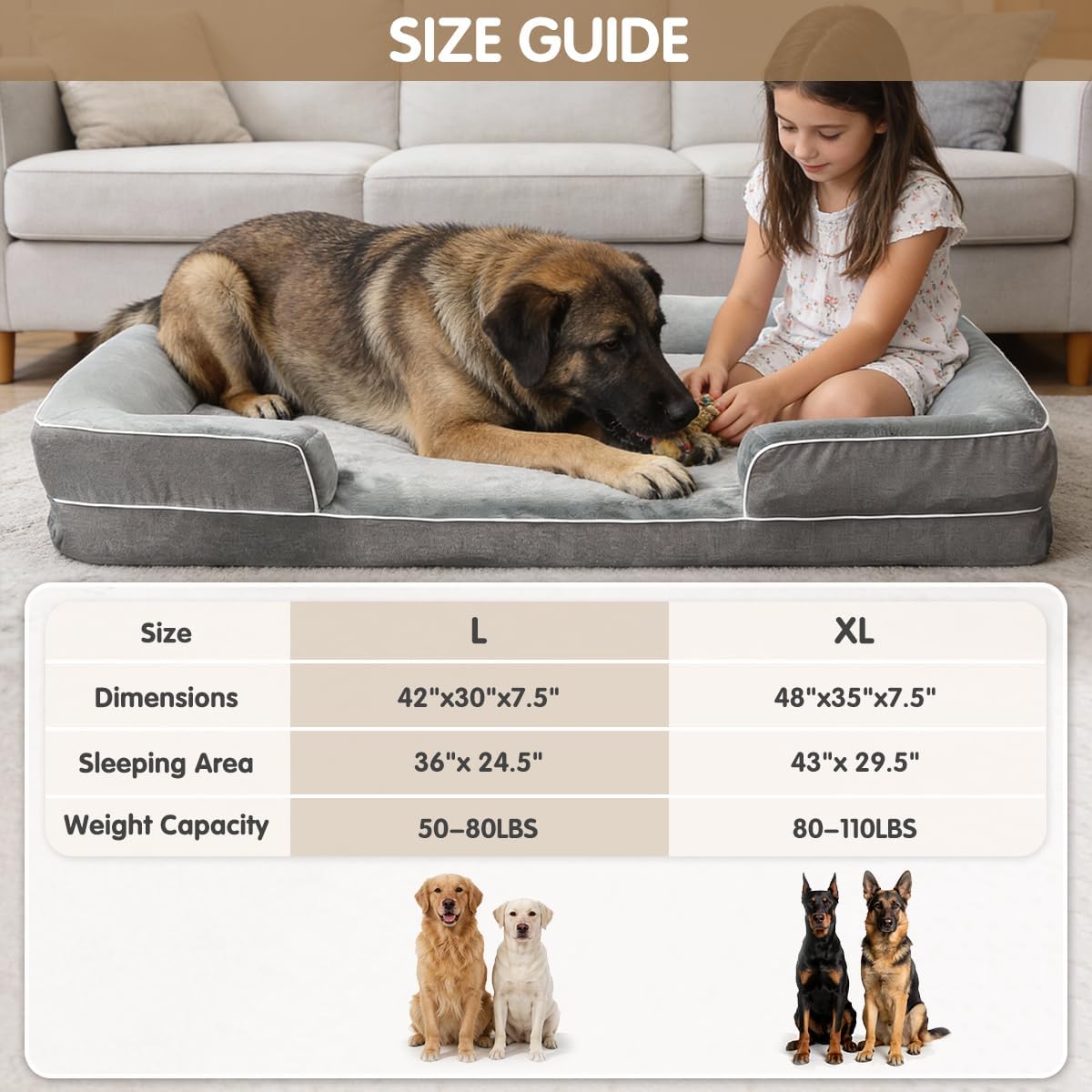 <br> Product Dimensions : 42 x 30 x 7.5 inches; 7.8 Pounds <br> Date First Available : September 28, 2025 <br> Manufacturer : PAPIHO <br> ASIN : B0FSZ6BYDB <br> Best Sellers Rank: #175,692 in Pet Supplies (See Top 100 in Pet Supplies) #2,323 in Dog Beds <br> Customer Reviews: 3.9 3.9 out of 5 stars (8) var dpAcrHasRegisteredArcLinkClickAction; P.when('A', 'ready').execute(function(A) { if (dpAcrHasRegisteredArcLinkClickAction !== true) { dpAcrHasRegisteredArcLinkClickAction = true; A.declarative( 'acrLink-click-metrics', 'click', { "allowLinkDefault": true }, function (event) { if (window.ue) { ue.count("acrLinkClickCount", (ue.count("acrLinkClickCount") || 0) + 1); } } ); } }); P.when('A', 'cf').execute(function(A) { A.declarative('acrStarsLink-click-metrics', 'click', { "allowLinkDefault" : true }, function(event){ if(window.ue) { ue.count("acrStarsLinkWithPopoverClickCount", (ue.count("acrStarsLinkWithPopoverClickCount") || 0) + 1); } }); }); <br>【Premium Orthopedic Support】This memory foam dog bed is designed like a high-quality human mattress. The high-quality egg crate orthopedic foam conforms to your dog's body, relieving pressure on hips and joints. It's the ideal bed for senior dogs or any pet suffering from arthritis, dysplasia,or just needing superior comfort for restful sleep.<br>【Spacious Dog Sofa for Medium/Large Breeds】Generously sized at 42 x 30 inch,this large dog bed provides ample space for big breeds like German Shepherds,Golden Retrievers,or Labradors to stretch out. The stylish dog sofa bed design with a supportive bolster pillow adds a touch of elegance to your living room, bedroom, or crate, giving your pet a dedicated cozy spot.<br>【Dual-Layer Memory Foam Comfort】 The combination of supportive base foam and a top layer of egg crate foam enhances air circulation, keeping your pet cool in summer and warm in winter. This durable construction prevents the foam from flattening over time, ensuring long-lasting orthopedic support for your pet.<br>【Effortless Cleaning & Safety】The luxurious and soft cover is completely removable and machine washable, making cleanup from dirt, fur, or accidents a breeze. The sturdy non-skid bottom ensures the large orthopedic dog bed stays firmly in place on hardwood or tile floors, preventing slips and providing security, especially for older pets.<br>【Perfect Rest for Your Pet】Sold as a 2-piece set,this waterproof orthopedic bed offers incredible value.Give your dog the gift of pain relief and deep sleep.It is the best bed for large dogs with arthritis or any pet that deserves a throne of their own.A wonderful festival gift.