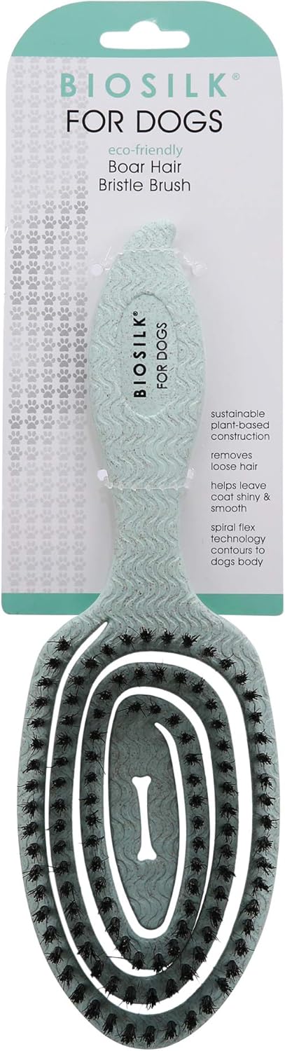 BioSilk for Dogs is an innovative way to bring the same quality and luxurious experience provided to humans to their pets. This line features easy to use pet grooming tools and dog hair brushes that will remove loose hair while keeping your dog’s coat shiny and smooth. BioSilk For Dogs Eco-Friendly Boar Hair Bristle Brush is a sustainable solution to maintaining your pet’s natural beauty. Made from plant-based materials, this brush for dogs shedding supports both the planet and your dog’s overall wellbeing. The brush’s handle is ergonomically designed for an easy grip, making it comfortable for you to use on a daily basis. his dog hair brush has a wide handle grip, making brushing an enjoyable experience for both the pet owner and the dog. This is a great dog brush for shedding. Long hair & short hair dogs alike will benefit from this type of dog brush. The best way to reduce pet shedding is to regularly brush your dog, using high quality pet brushes for dogs’ shedding. This soft bristle dog brush is gentle but effective at removing loose hair and debris on pets. The spiral flex technology of the boar hair bristles contour to your dog’s body, leaving behind a beautiful sheen. The bristles are gentle yet effective at shedding your dog of loose hair. Finally, you and your dog can have a brushing experience you’ll both enjoy. Directions: Gently brush in the direction of hair growth, from the skin out. Begin at the neck and work your way to the tail down to the legs. Though this is a soft dog brush, be gentle around the dog’s face, eyes, and sensitive areas. For best results, use dog grooming brushes daily. Safety Warning: Brush gently so as not to irritate your dog’s skin. Use care when brushing your dog’s fur with a dog brush and dog grooming tools and dog stuff and puppy supplies. Also look into other dog tools for grooming like a slicker brush, undercoat rake for dogs, deshedding tool, furminator for dogs, and pet hair remover.