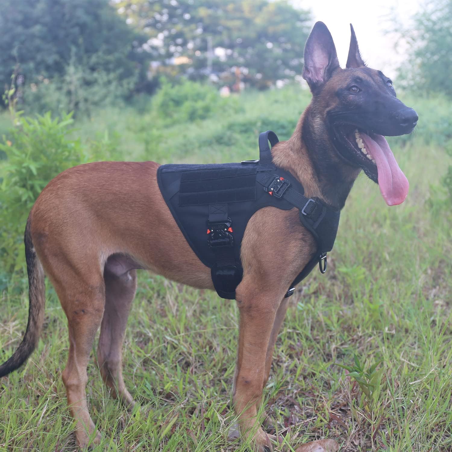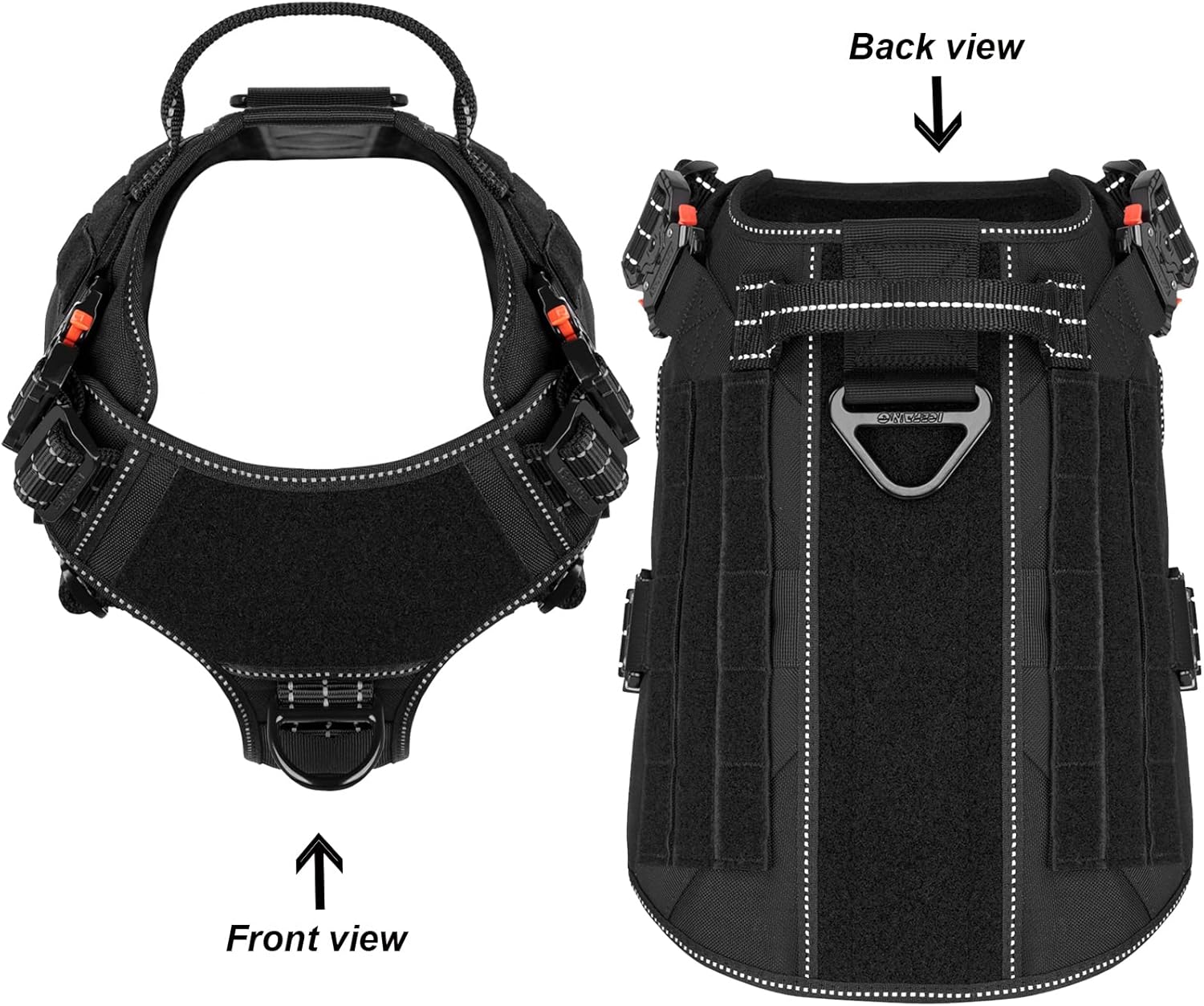 <br> Is Discontinued By Manufacturer : No <br> Package Dimensions : 12.8 x 9.7 x 2 inches; 1.8 Pounds <br> Item model number : GN1-4M <br> Date First Available : August 30, 2017 <br> Manufacturer : frostwolf <br> ASIN : B07LFQM9MC <br> Best Sellers Rank: #30,626 in Pet Supplies (See Top 100 in Pet Supplies) #356 in Dog Vest Harnesses <br> Customer Reviews: 4.7 4.7 out of 5 stars (3,160) var dpAcrHasRegisteredArcLinkClickAction; P.when('A', 'ready').execute(function(A) { if (dpAcrHasRegisteredArcLinkClickAction !== true) { dpAcrHasRegisteredArcLinkClickAction = true; A.declarative( 'acrLink-click-metrics', 'click', { "allowLinkDefault": true }, function (event) { if (window.ue) { ue.count("acrLinkClickCount", (ue.count("acrLinkClickCount") || 0) + 1); } } ); } }); P.when('A', 'cf').execute(function(A) { A.declarative('acrStarsLink-click-metrics', 'click', { "allowLinkDefault" : true }, function(event){ if(window.ue) { ue.count("acrStarsLinkWithPopoverClickCount", (ue.count("acrStarsLinkWithPopoverClickCount") || 0) + 1); } }); }); <br>[Refer to Size Chart]: Before buying a dog harness, spend a little time measuring your dog's size, which can help you avoid the hassle of returns. Please refer to the ICEFANG Brand size chart , Medium(Neck:16"-22" ; Chest:25"-31" );Large(Neck:18"-24" ; Chest:28"-35");X-Large(Neck:20"-28" ; Chest:32"-39")<br>[ Heavy duty and Easy to take on ]: This dog vest equiped with 4x Aluminium Metal Buckles (2800N) ,reinforce Sewing by Bartack and X in Box Pattern on Each Joint and Heavy load Point , allowing you to easily and quickly put on and take off without making your dog uncomfortable.It is designed with 5 adjustment points, ensuring a snug fit and making it difficult for dogs to escape<br>[2 Leash Clips]: One heavy-duty V-ring positioned near the dog's neck for daily walking . A single anti-pull D-ring is sewn onto the front chest area, designed to lift a dog's leg off the ground when pulled, Let you easily control a pulling dog and train it to walk calmly by your side<br>[Make your dog stand out]:Stick different magic tapes to make your dog stand out more and earn others' admiration when walking your dog ,2 x Loop Panels (Medium :3"x6"; Large/X-large:3"x7.5") are Sewn onto each side ;1x Square Loop Panel ( Medium:2"x3 ; Large/X-large: 2"x4" ) is Sewn on The front Chest ,allows you to attach different dog patches<br>[Molle /PALs Compatible ] :1" Strips of Molle ( Medium:4 x Hook & 2 x Loop,Large/X-large: 5 x Hook & 2 x Loop ) are Sewn Onto each Side,Allowing Your Dog to Carry Gears in Training / Daily Walking/Adventure Hiking, Compatible with Molle /PALs bags,You Can Aslo attach a Dog Bowl,Water Bottle, and toys using D-shaped carabiners (carabiners not included)