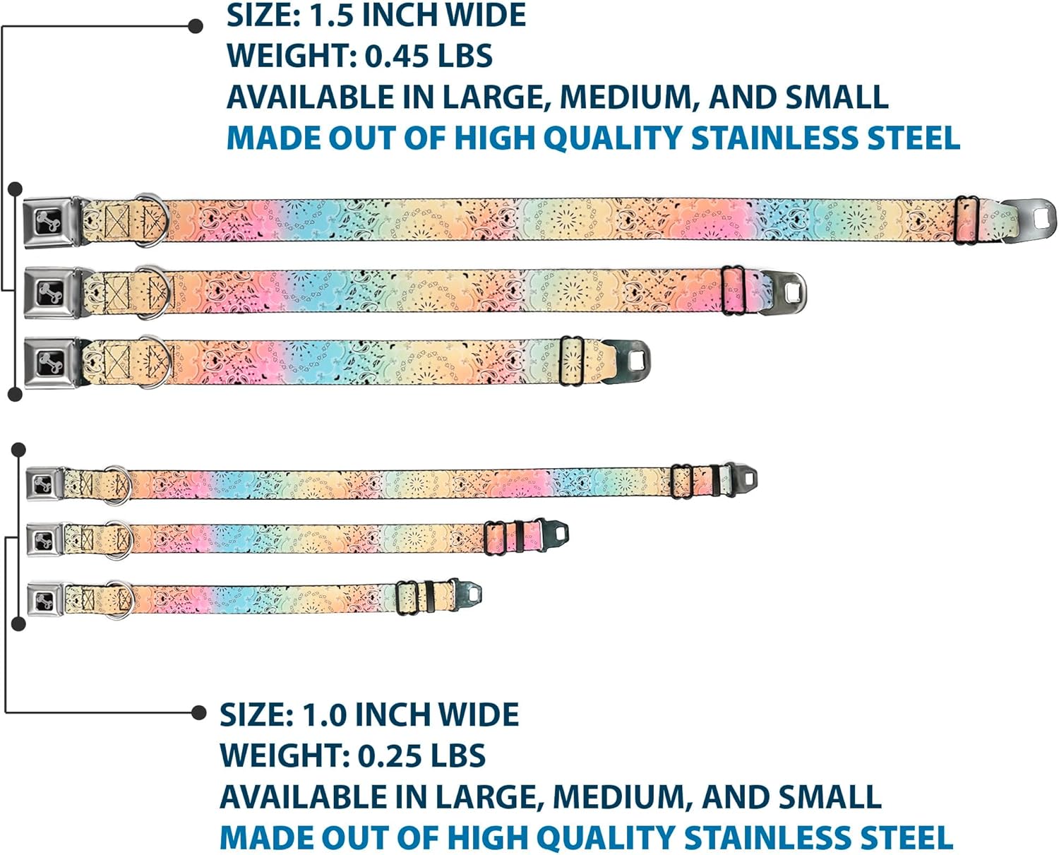 Your dog will be the talk of the town when people notice they’re wearing this awesome SeatBelt Dog Collar! Made from high-density polyester and durable steel components, this collar is built to last. It features beautiful vibrant artwork. The buckle is a miniature authentic SeatBelt Buckle, so you press the center button to release the clasp. This product is Made in USA by Buckle-Down Inc. and officially licensed by Buckle-Down.