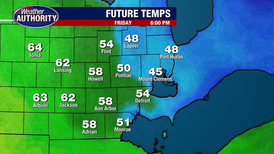 The real warmth surges in overnight, and by Saturday morning we’ll be near 60.