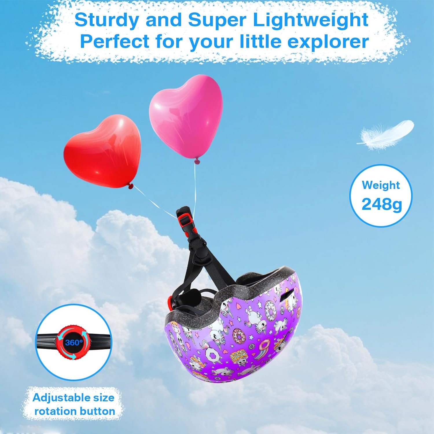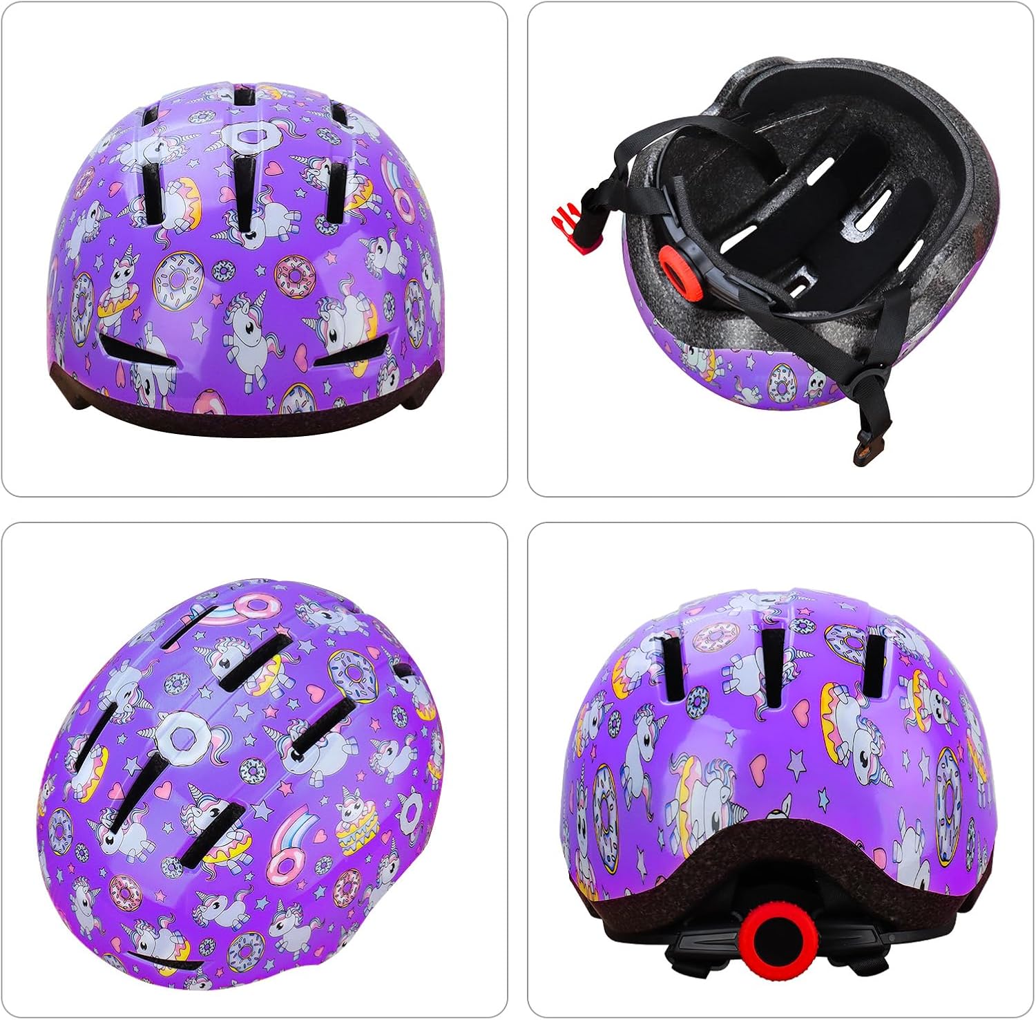 【Adjustable Fit System】Rear adjustment dial and straps make it easy to fit kids ages 3-8 with head size 19-22 inches.