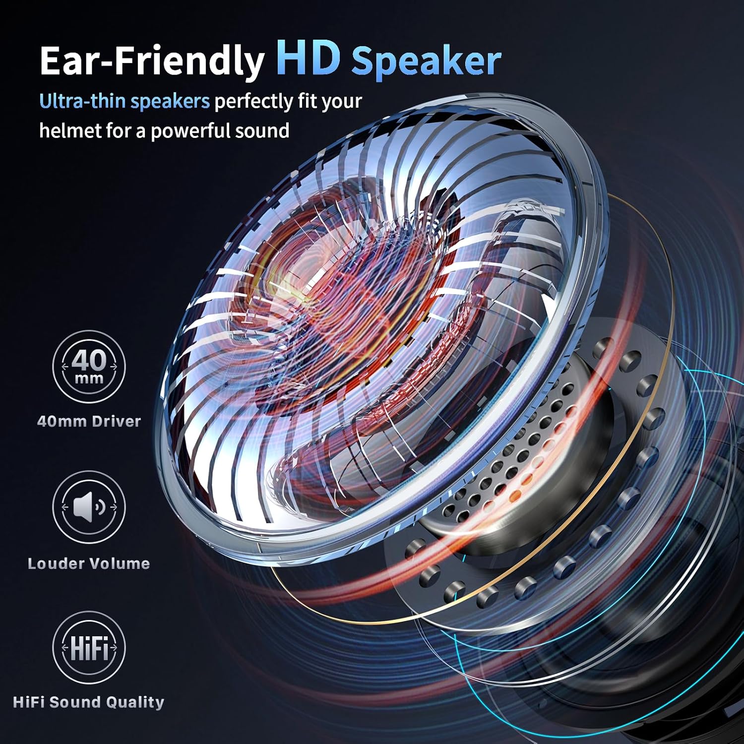 Superior Sound Quality, HD Speakers: FX-S Bluetooth motorcycle headset is paired with Hi-Fi motorcycle speaker(Width: 40mm, Height: 9mm) that delivers every audio detail clearly and vividly, providing the most superior sound quality in any environment. It also fits perfectly into your helmet without putting any strain on your ears
